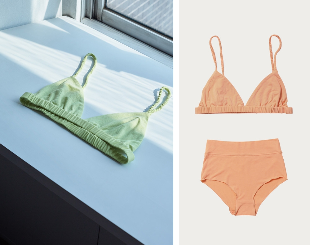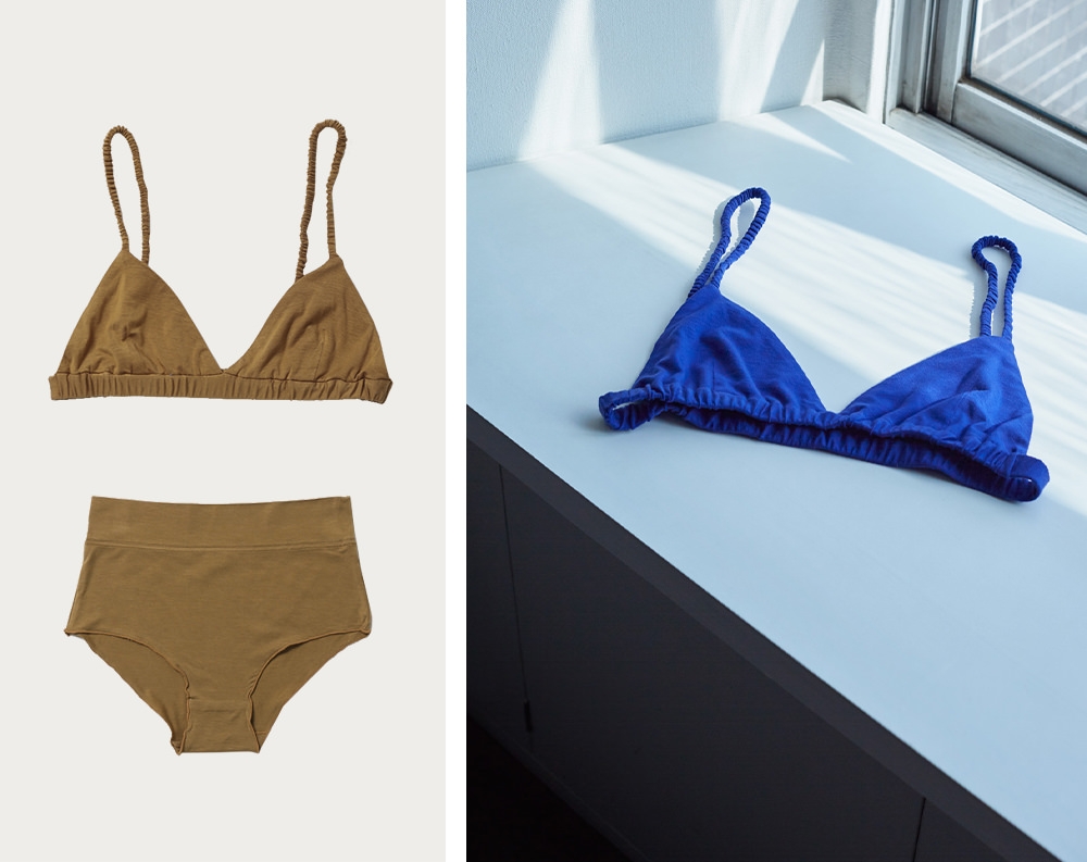 “旅先に持って行きたくなるワードローブ”がコンセプトのブランド「WANDERUNG」が届ける、普段使いにもこだわりを持った人のためのアンダーウェア。シルクのような肌触りのユーカリの繊維を利用した再生繊維・リヨセルを使用し、ブラトップはノンワイヤー&ノンホックで極限までストレスフリーをこだわり抜いている。ショーツはウエストと太もも周りにゴムを使用していないので、リラックスした穿き心地。心にも身体にも無理のない、リラックスした下着で日常を軽やかに過ごしてみて。