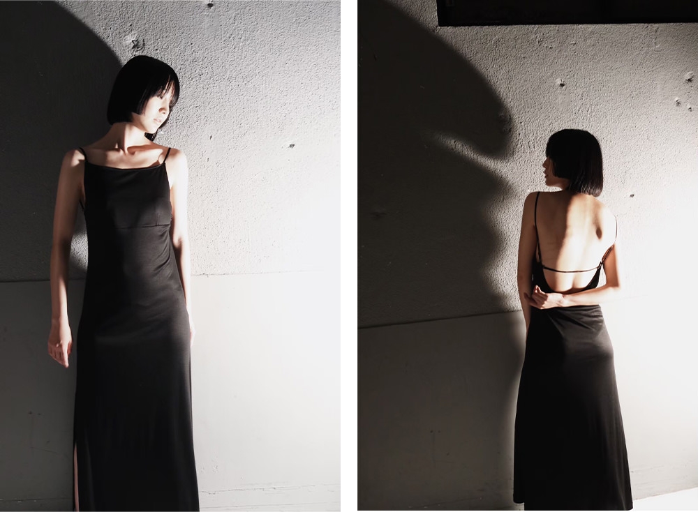 “人生を引き立てるスキンジュエリー”をコンセプトにした、ランジェリーブランド「Albage Lingerie」。上質な質感とエレガントなスリットで人気のオープンバッグワンピースが、エコ素材にアップデートされて再登場する。環境に配慮したレーヨンとプレミアムオーガニックコットンをミックスした素材は、洗濯機で洗うことが可能。カップ一体型で、下着を気にする必要がないため、後ろ姿まで抜かりなく、女性らしさを演出できる。肌にダイレクトに触れるアイテムこそ、サスティナブルなものにこだわって。気持ちまで豊かになる着心地をダイレクトに堪能したい。