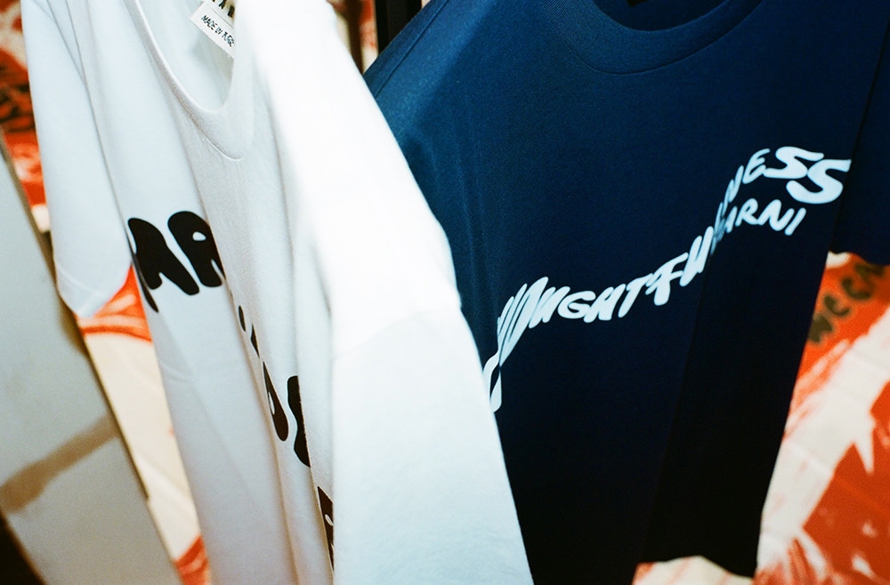 POP UP SHOPでは、週替わりで発売される日本限定アイテムに加え、モトーラさんもデジタルショーで出演した2021年春夏コレクションも登場。また、日本限定アイテムとして発売される“MARNI LOVER”や“THOUGHTFULNESS MARNI”などのスローガンを入れたTシャツやラフィアバッグなど、スペシャルピースの数々も。ペーパー素材で作られたサステナブルなトートバッグやミニウォレットも販売される。さらに嬉しいことに、POP UP SHOP開催中に税込¥55,000以上お買いものをすると、ノベルティとしてPVCキーストラップがもらえるチャンス。この機会を見逃さないで!