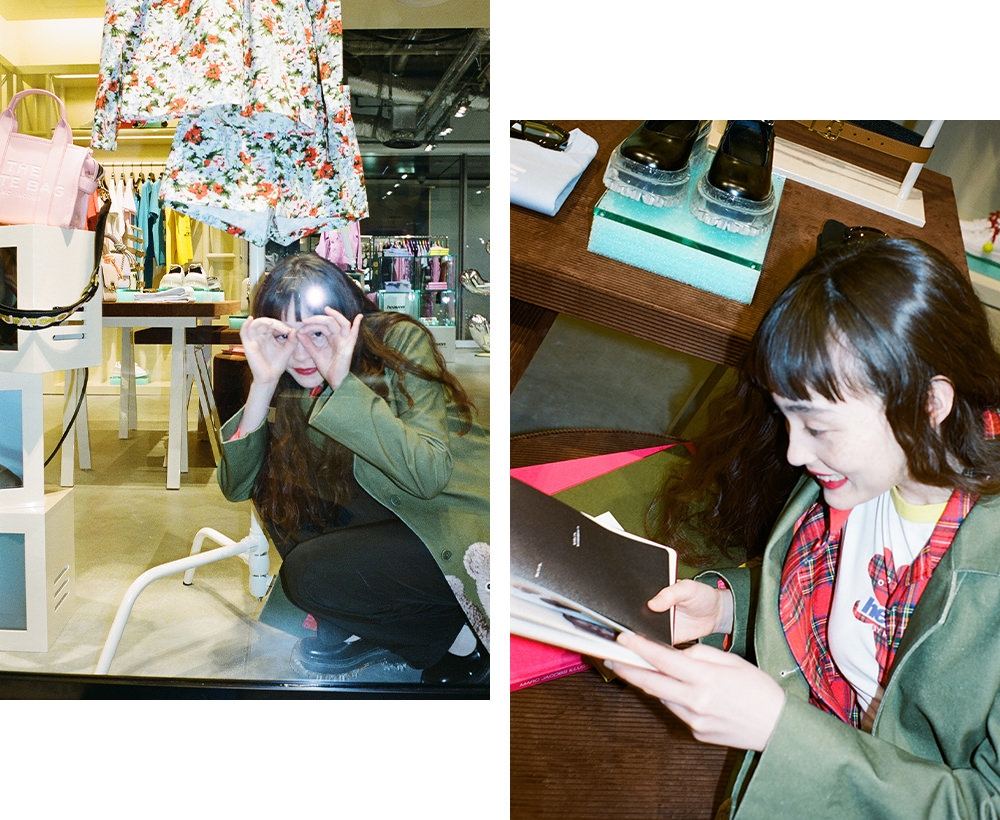 モデル、そして女優としてファッション業界からラブコールが絶えないモトーラ世理奈さんが訪れたのは、今春渋谷PARCOの2階に新たにオープンした「MARC JACOBS」。アイコンバッグを展開する“THE MARC JACOBS”のほか、2020年にデビューした新ライン“Heaven by Marc Jacobs”も揃う同店へ足を運んだ。