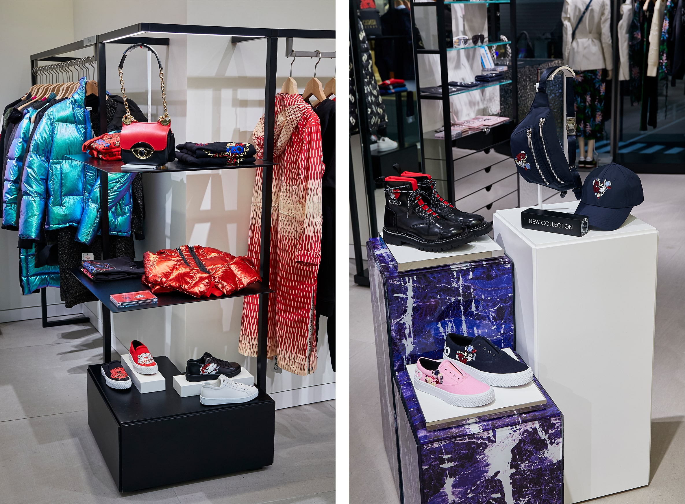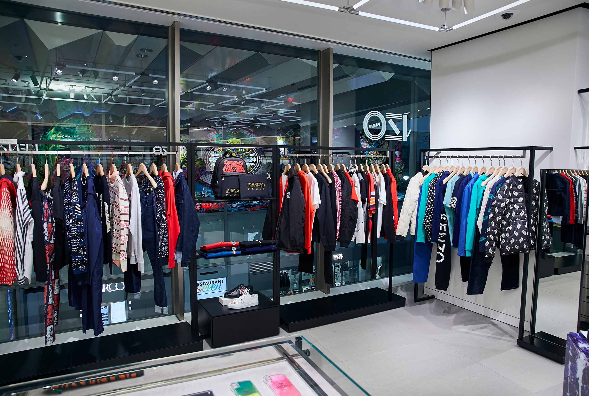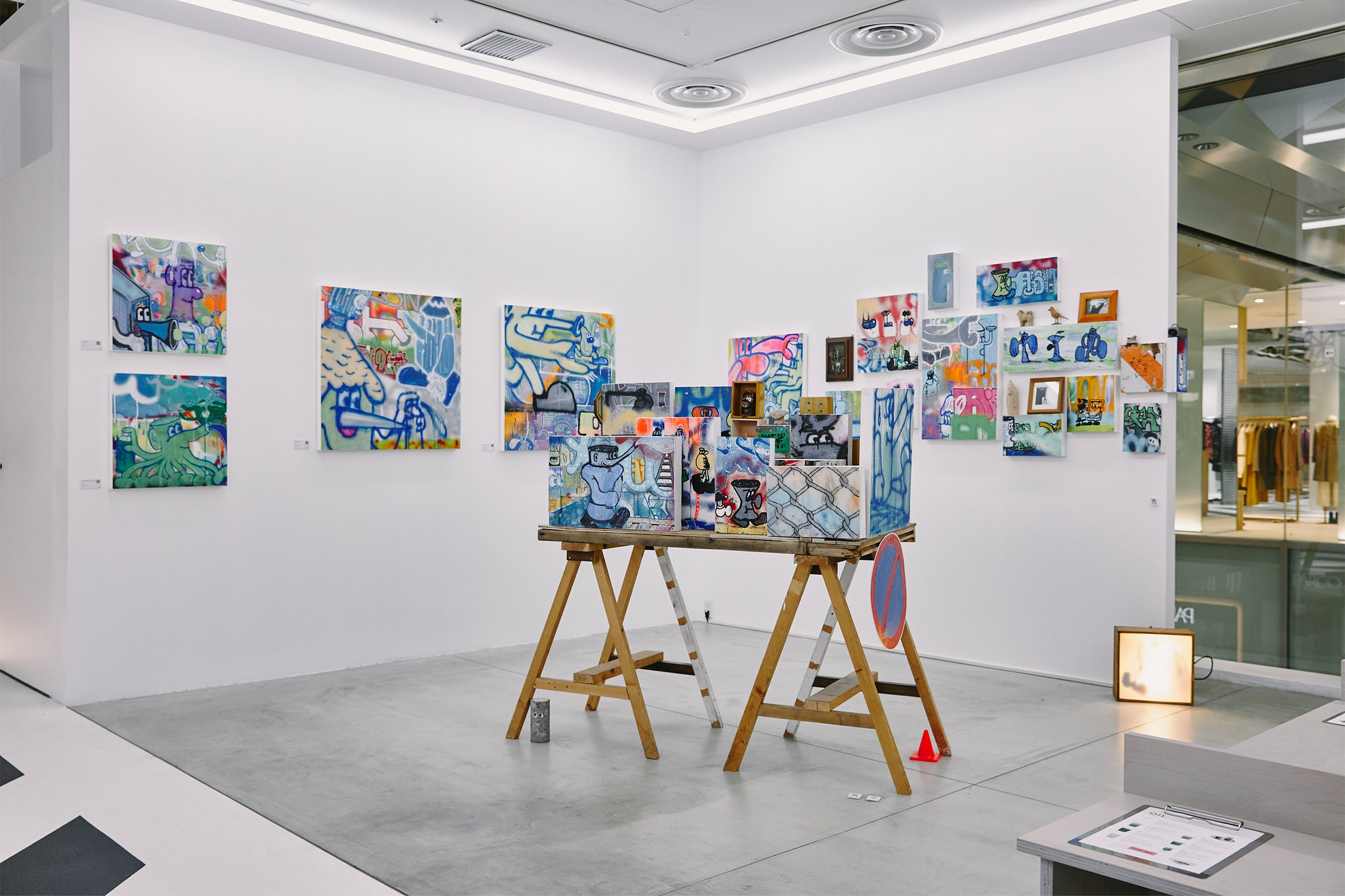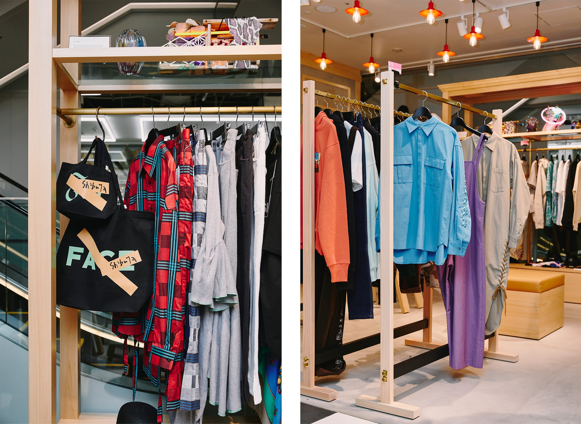 「ENFÖLD/någonstans」の初複合店。内装デザインは“遊び場”をテーマに、アーケードゲーム機やうんてい、ビニールホースで作られたユニークなスツールなどが置かれている。店内のグラフィックアートは、YOSHIROTTEN氏によるもの。