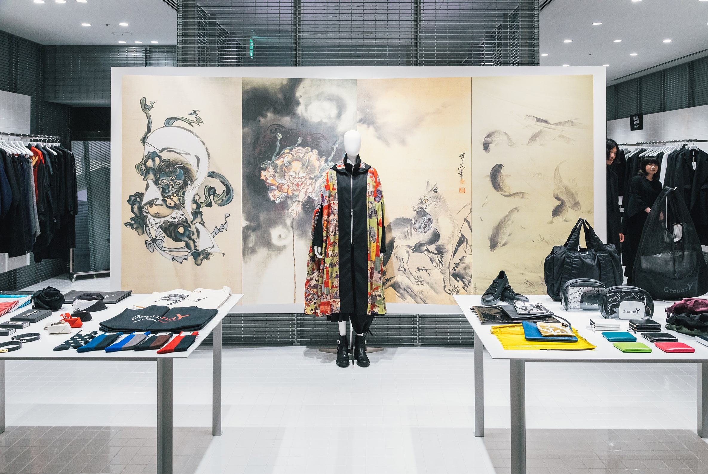 幕末から明治にかけて活躍し、幅広い画業で知られる“”河鍋暁斎-かわなべ きょうさい-”とのコラボレーションを発表。店内には、その世界観を表現した戯画や風刺画が広がる。