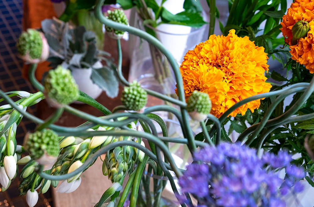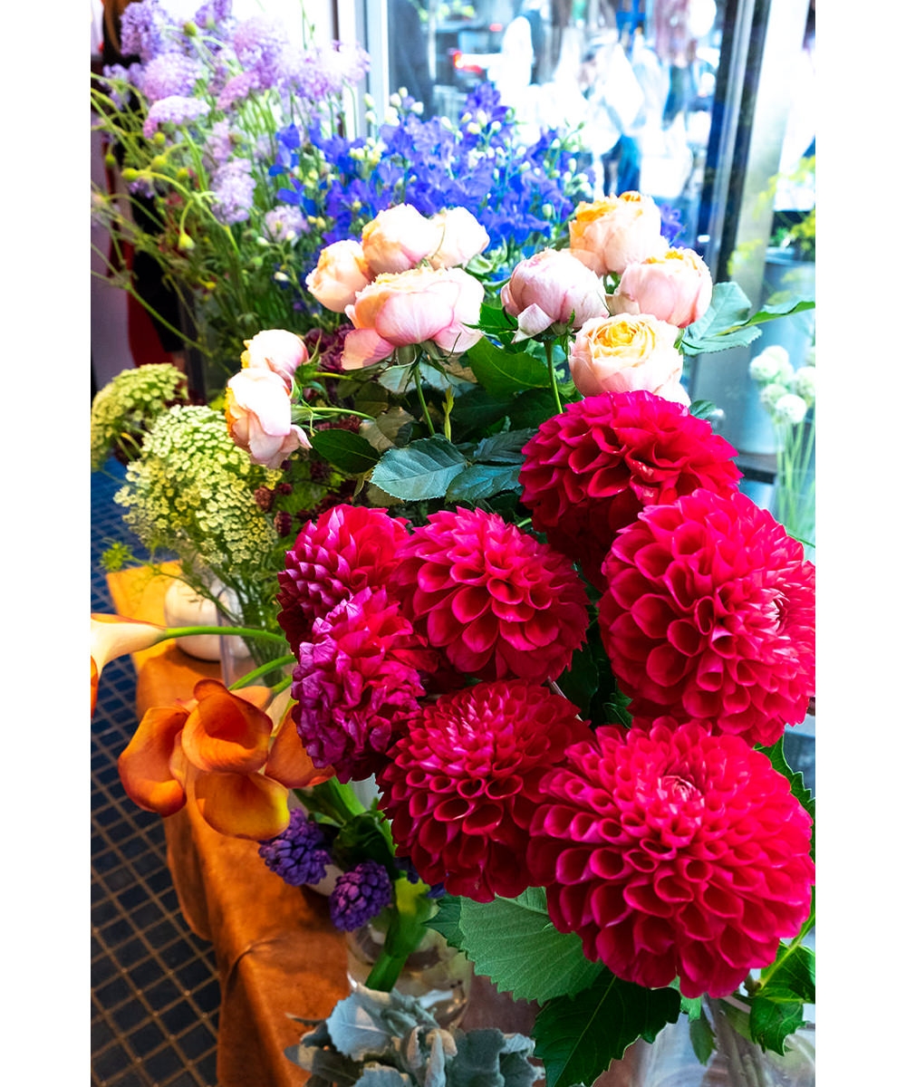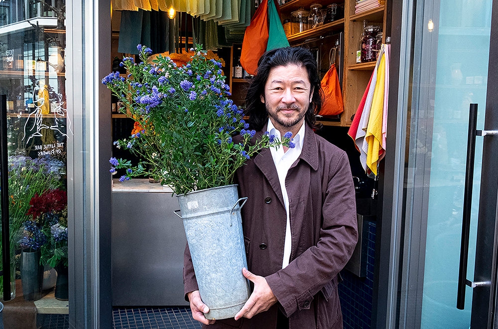 渋谷PARCO1Fを出てオルガン坂に面して歩くと、色とりどりの草花が目に飛び込んでくる。四季折々の植物が並ぶフラワーショップ「THE LITTLE BAR OF FLOWERS(ザ・リトル・バー・オブ・フラワーズ)」だ。「僕の家には植物がたくさんあるんです。人は誰しも孤独と向き合わないといけないときがあると思うんですが、そういうとき、植物が隣にあるといい気がするんですよね。全然詳しくないんですけど」と語る浅野さんが、「これいいですね!」と指差したのは、春から初夏に咲くセアノサス。「そう言えば、『イージー・ライダー』に出ていた俳優のピーター・フォンダが、こういう花を抱えている写真がありましたよね」。そう言ってポーズを決めた浅野さんは、さながら映画の登場人物のよう。クリエイティブな気持ちを刺激する力が、草花にはあるのかもしれない。