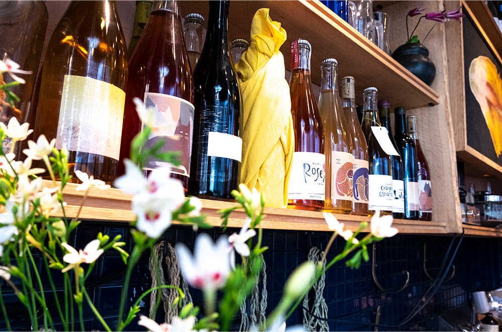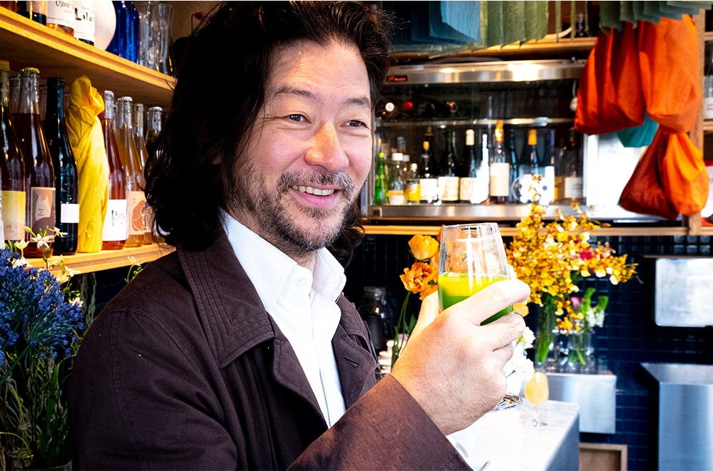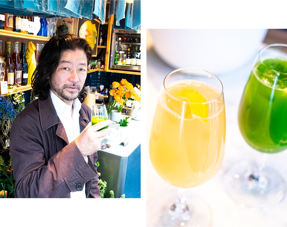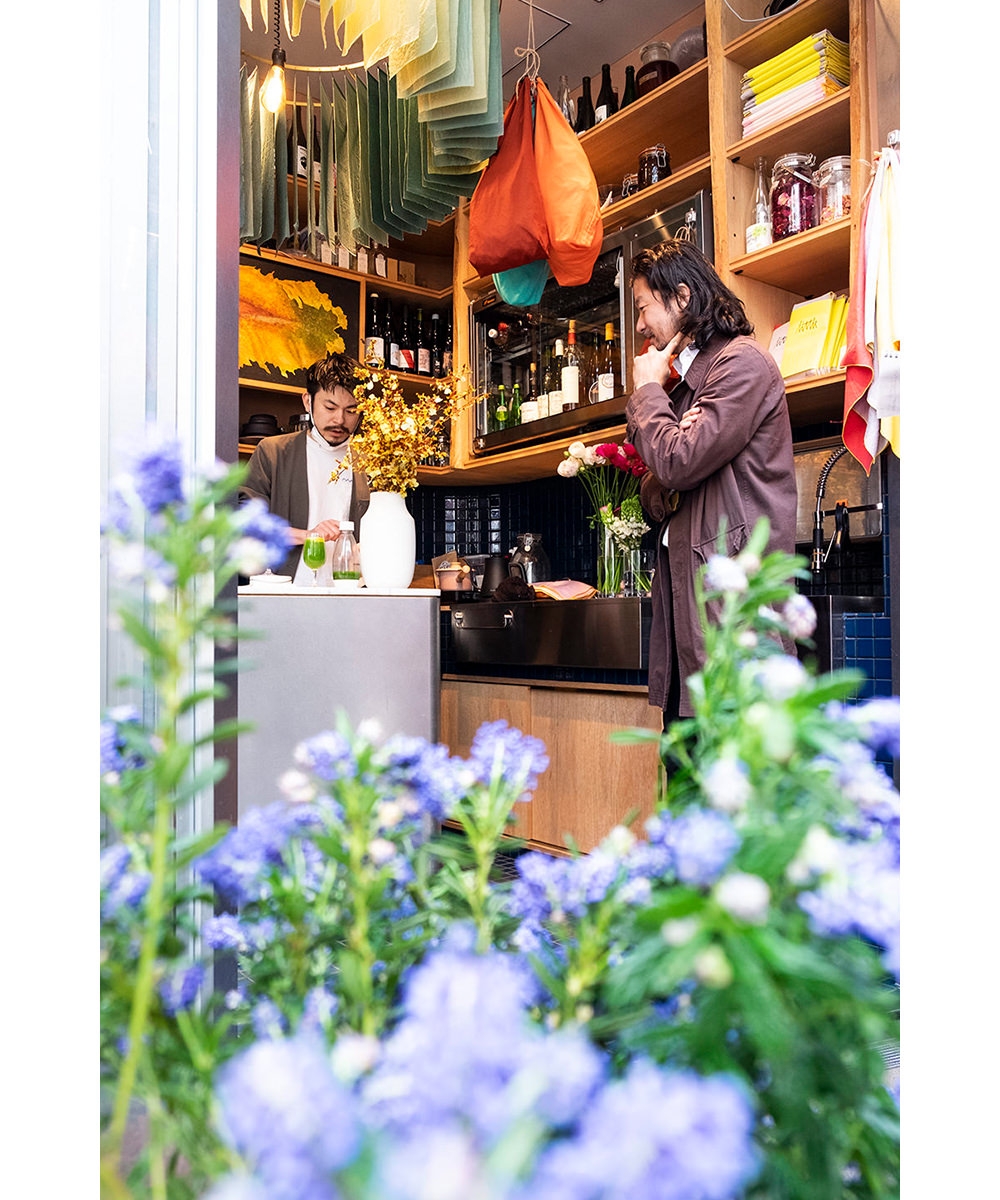 このショップは、夜の帳が下りると自然派ワインが楽しめるワインスタンドになる。毎週火曜と水曜は「Bar Straw(バー・ストロー)」のノンアルコールカクテルが提供されているので、お酒を飲めない人でも心地のいいひとときを過ごせるだろう。この日、浅野さんが飲んだのは、セロリとパセリを使ったカクテル。「野菜を使ったジュースは、デパートなんかで見つけるたびに飲んでしまうくらい大好物です。これもおいしいですね」。