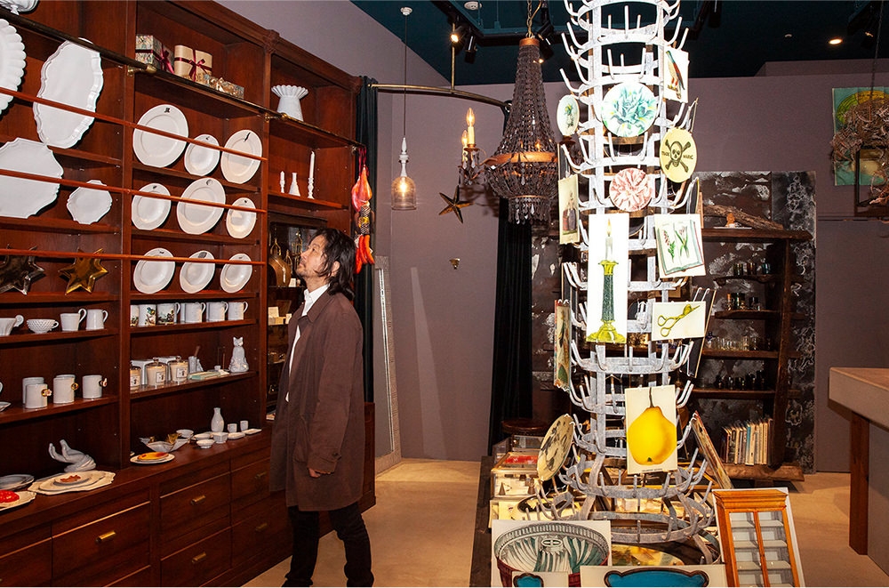 まるでヨーロッパの下町に佇むアンティークショップのような佇まいの「H.P.DECO アート感のある暮らし」は、「H.P.FRANCE(アッシュ・ペー・フランス)」が運営するライフスタイルショップ。世界中から集められた雑貨やインテリア、洋服、ジュエリーは、ショップ名の通り、芸術品のように見目麗しい。「もともと家の壁に、額に入ったアート作品をたくさん飾っていたんです。だけど、額に入れたら何でもかっこいいじゃないですか?(笑)。それはズルいなと思って、ここ数年はしまっていたんですよ。でも、またちょっと飾り始めたので、ここに並んでいるようなものには興味があります」。