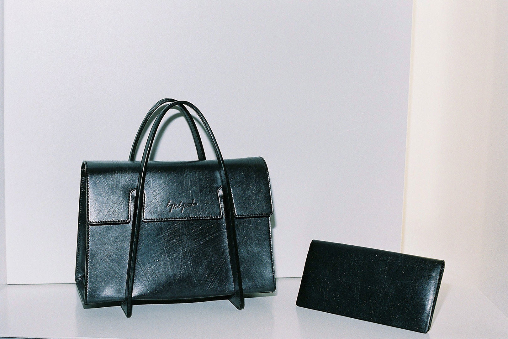ブランドのアイコン的存在でもある「Y BACKPACK」。ファスナーやポケットなどの機能面をすべて背面側に配置することで、極限までミニマルでシームレスなバックスタイルを完成させている。下駄からのインスピレーションによって誕生した「AEREAL」もまた、「discord Yohji Yamamoto」らしい佇まい。レザーにムラ感のあるアンティック加工を施し、さらにスクラッチを加えた独特の風合いで、日常使いによる傷も気になりにくい。同様の素材で展開する「Long Wallet」は、6枚のカードフォルダー付きで使いやすさ抜群。