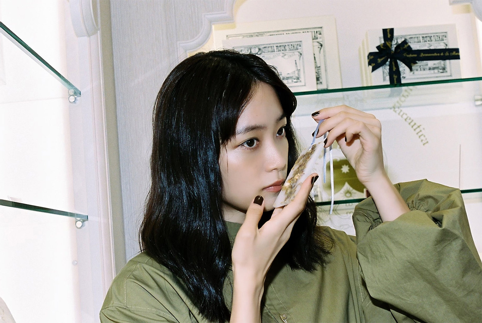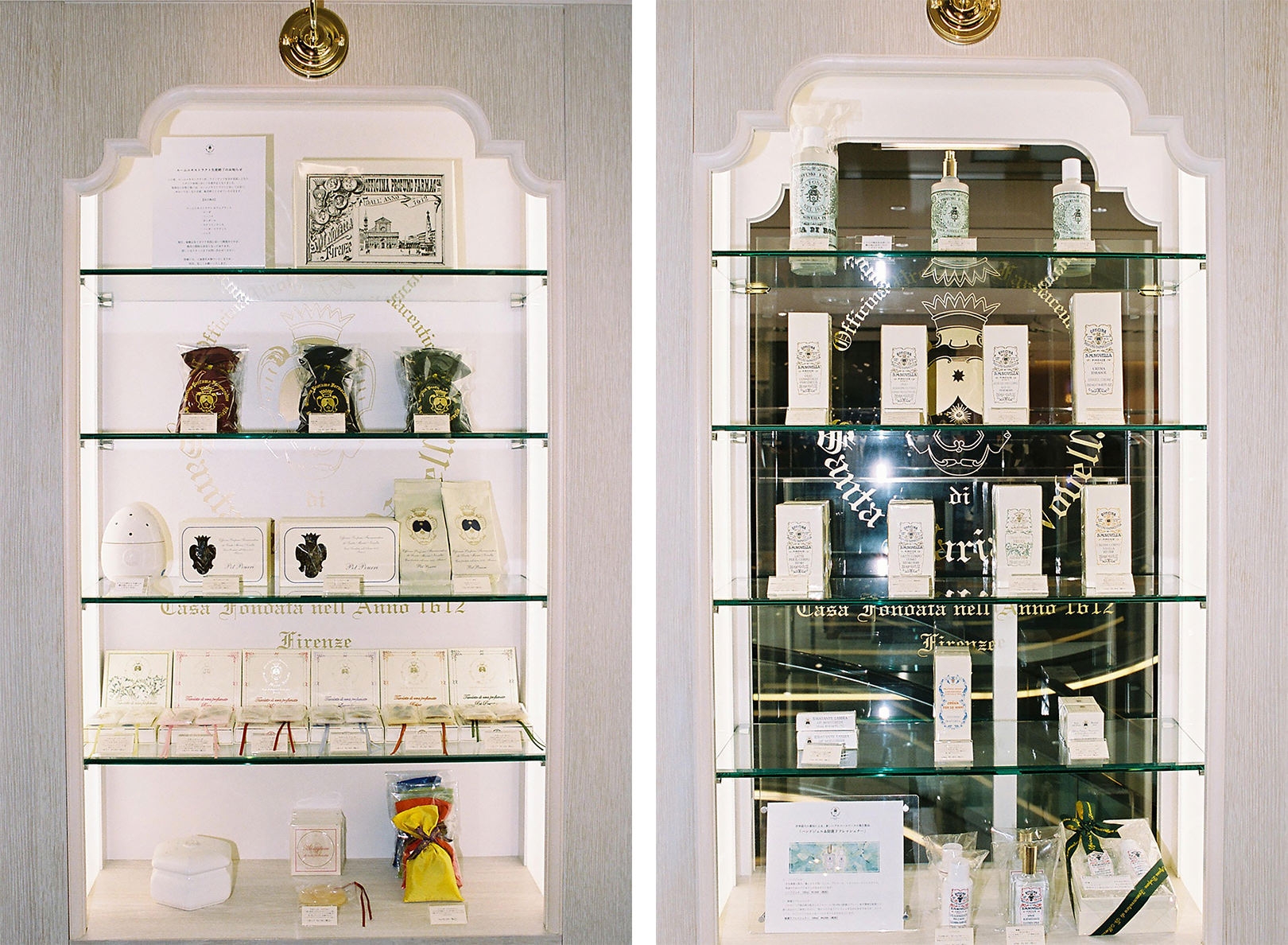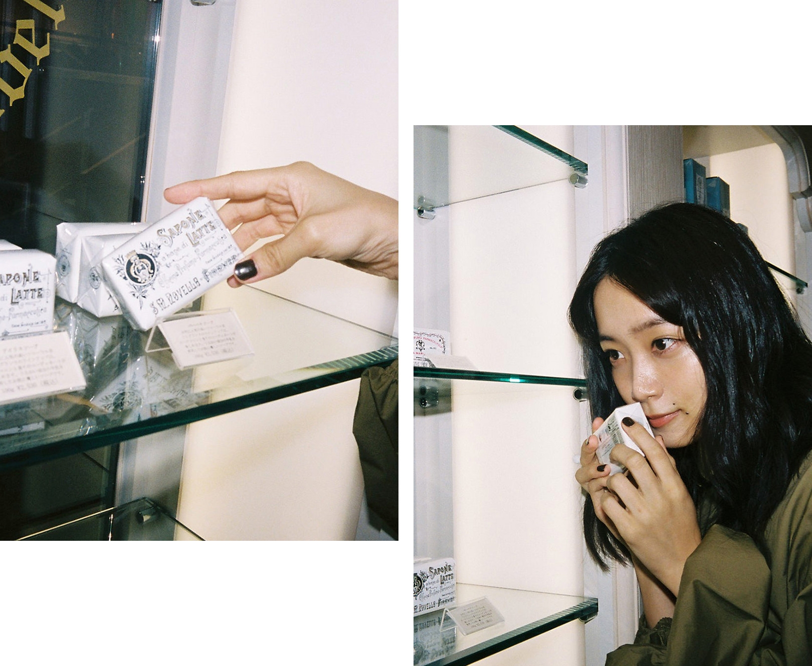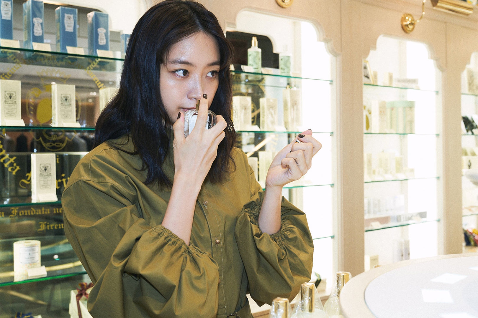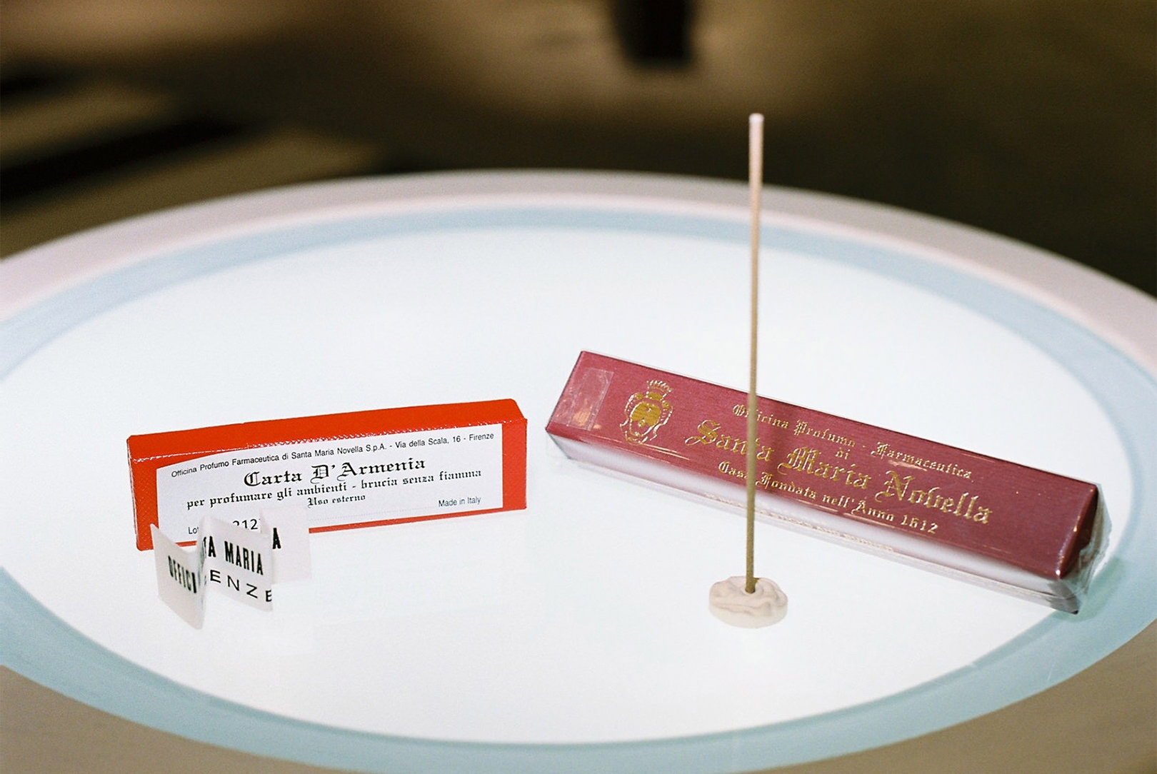 Santa Maria Novellaの知られざる名品、ペーパーインセンス。火を点けずとも狭い空間であれば香らせることができるため、引き出しに入れたり、旅先でクローゼットに入れたりと、さまざまな場面で楽しめる。「サシェタイプのポプリ、お香などとともに、ギフトとしてもいいですね」。最後に深川さんにSanta Maria Novellaが好きな理由を尋ねると、「きっかけは一人の女性。私にとって憧れの方で、ふと近づいた時にいい香りがして。勇気を出して何の香りか尋ねたら、アックア・デッラ・レッジーナのフレグランスを教えてくれたんです。そういう意味でも、ここは私にとって特別な場所です」