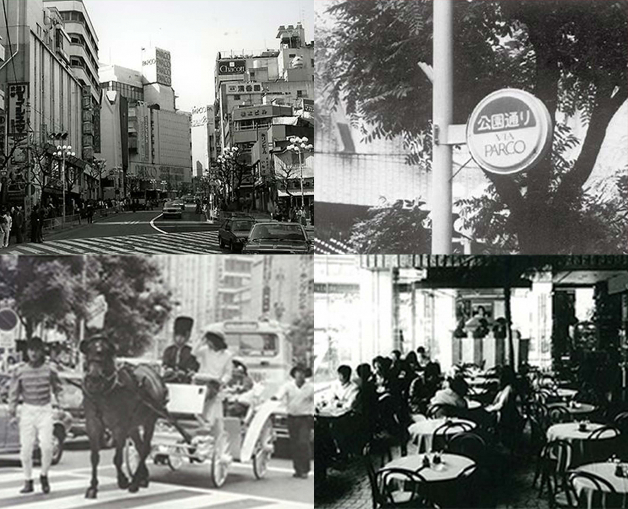 渋谷PARCO開業時の広告キャッチコピーは、「すれちがう人が美しい〜渋谷公園通り〜」。ショッピングの場としてだけではなく、新しい時代の消費者が集まる渋谷の街に合わせて、街の環境整備にも取り組んだ。渋谷・公園通りのスズランを模した美しい街灯、街路樹や花を植え、電話ボックスさえおしゃれに作り変える。欧米のライフスタイルに対する憧れや思想が、日本人の価値観を大きく変える時代を見据えた街作りは、多くの若者を渋谷・公園通りに惹きつけた。