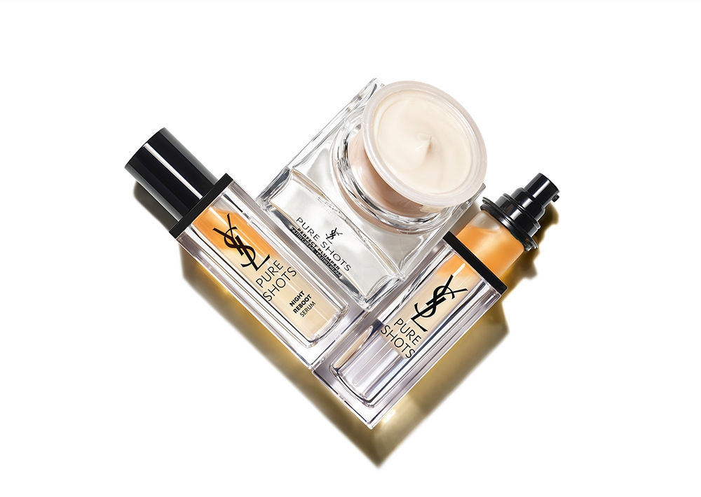 (上)左から、ピュアショット ナイトセラム(30mL) ¥12,650、ピュアショット クリーム(50mL) ¥14.300、ピュアショット ナイトセラム(50mL) ¥16,170