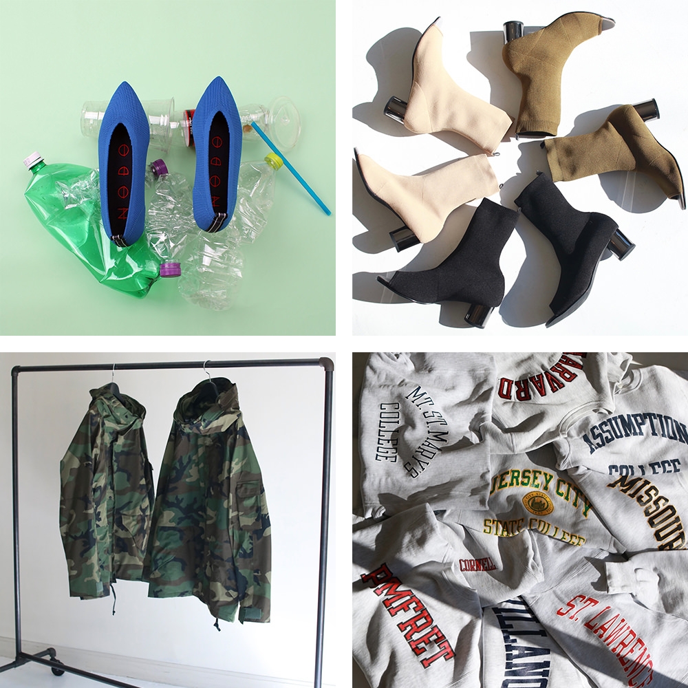 「k3」では、サステナブルとファッション性を両立する独自のアイテムを多数展開。リサイクルポリエステル100%をニットアッパーに採用している「NODOKNITS」とは、メタリックなローヒールが目を引く別注モデルを制作。古いストッキングを原料としたレッグウェアブランド「Swedish Stockings」との取り組みとして、店頭や、3階・4階エスカレーターサイドには使えなくなってしまったストッキングや靴下を回収する「SWE-S回収ボックス」を設置。回収されたストッキングは100%リサイクルされ、新しい素材に生まれ変わる。他にも渋谷PARCO店限定で、k3&co.ディレクターKojima Reiko氏がセレクトしたヴィンテージアイテムを「G.V.G.V.」やインポートアイテムとミックスさせてスタイリング提案をするなど、環境配慮についてもエッジの効いた価値観から発信し続けている。