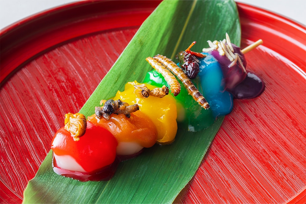 昆虫食やジビエ料理などをカジュアルに楽しめる個性派酒場「米とサーカス」から、「PRIDE WEEK」にふさわしいレインボーカラーのスイーツが誕生。6つの昆虫(カイコ、蜂の子、コオロギ、ミールワーム、イナゴ、マゴット)を色鮮やかな団子に添えたデザートは、見た目のインパクト大! スペシャルなデザートで、記憶に残る食体験を。