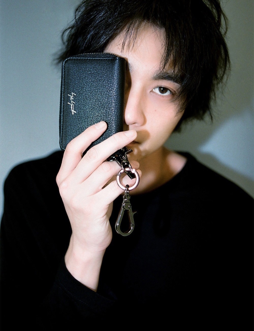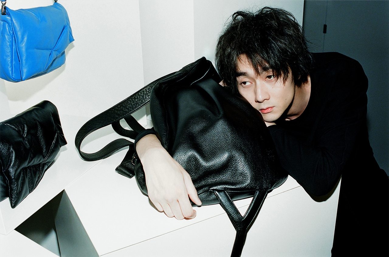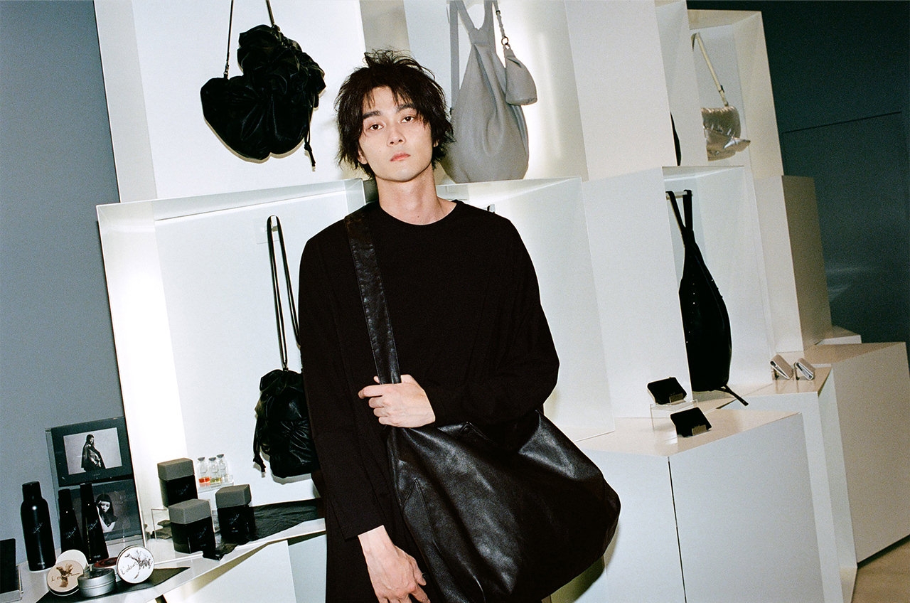 バッグを後方からライトアップするユニークなディスプレイの中で目に留まったのが、アイコンバッグの「Y BACKPACK(BIG)」と「Strap key case」だ。バックパックはショルダーバッグやボディバッグとして、キーケースはチャームを取り外して使用することも可能。“Yohji Yamamoto”の繊細なロゴが、その存在をさりげなく主張する。「物を選ぶときの基準は、自分のスタイルになじんでいくかどうか。一緒に育っていく…じゃないですけど、そう感じるものを手に取るようにしています」。