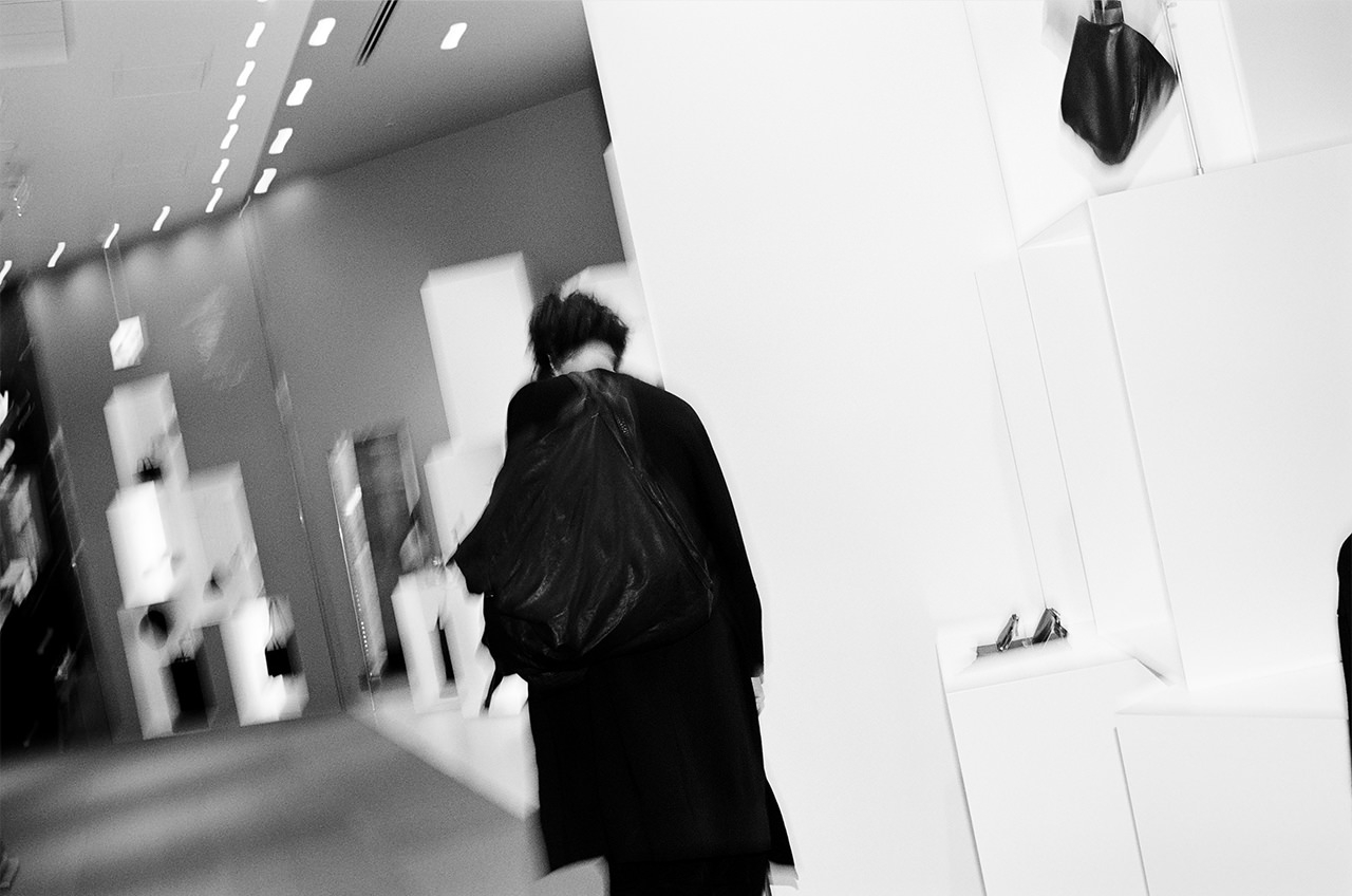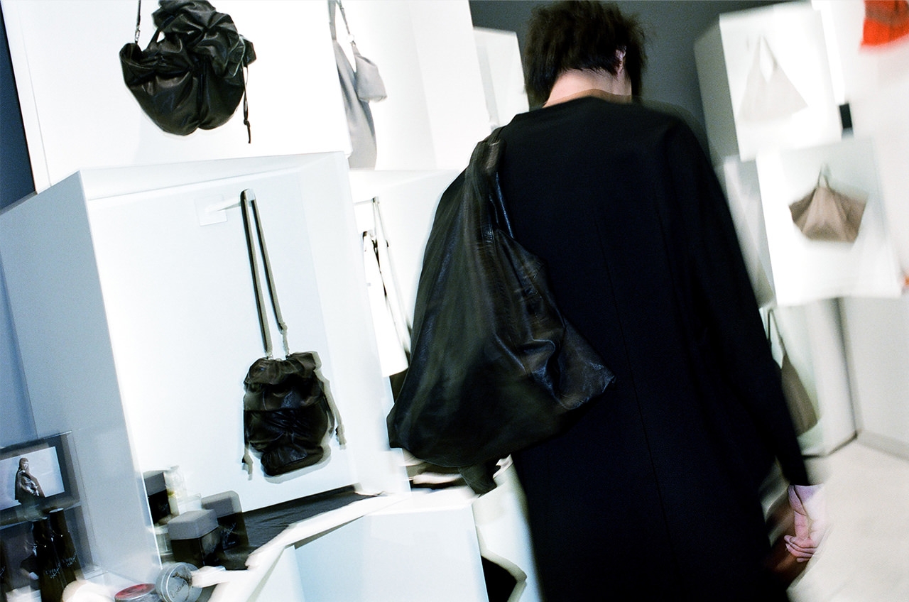 1981年のパリコレクションデビュー以来、モードへの挑戦者として西洋の美意識を揺るがしてきた山本耀司氏。その反骨精神を持った「黒」のスピリットは、今やモードの真髄として人々に受け入れられている。この日、柳さんが着用したのはそのスピリットが宿るラグジュアリーアクセサリーライン「discord Yohji Yamamoto」。「小さい頃から黒はすごい好きで。一見、黒は無個性――というか、個性が見えづらい色だと思うんですけど、逆によりその人の顔を見るから、個性を見せられるんじゃないかな、と思っています。身につけるモノはその時々の自分の美学によって、変わったりしますよね」。ショップの内装は、日本庭園の石組に着想を得たという白いボックスが特徴的。メイドインジャパンのバッグやアクセサリーが凛として一堂に並ぶ。
