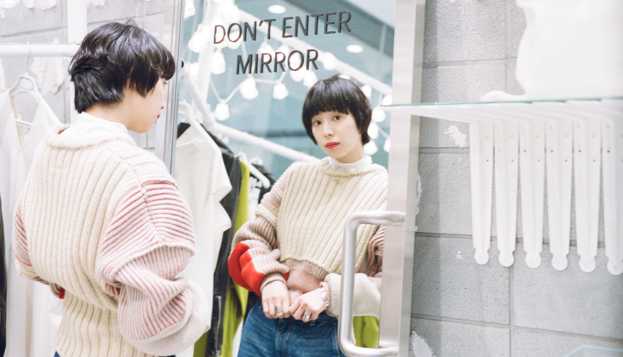 「これとっても可愛いですね」と夏帆さんの目に留まった靴下は、2020年に誕生したブランド「beautiful people feels」の人気アイテムであるリマインダーソックス。このソックスのコンセプトは、“あなたが大切な存在であることを忘れないよう、リマインダー機能を搭載したソックス”。2足セットではなく片足ずつ販売されており、ソックスに書かれた言葉で、自己表現や大切な人へ伝えたいメッセージを届けることができる。名詞と動詞からそれぞれ1つずつ靴下を選んで、オリジナルのメッセージを完成。誰かともっと近づきたくなる気持ちが、ふくらんでくる。
