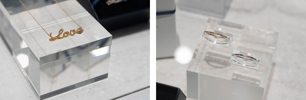 日常の中で親しみやすいジュエリーをコンセプトに掲げる「AHKAH」からは、LGBTを象徴するレインボーカラーを表現したスペシャルアイテムがお目見え。“Love“モチーフに様々な色石がセッティングされた遊び心あふれるネックレスのほか、光の線をテーマにした“Tina”コレクションからは虹色のリングが登場。チャーミングな輝きに目を奪われる。NY在住のデザイナーKOTA OKUDA氏とのコラボレーションによるジェンダーレスなカプセルコレクションも見逃せない。