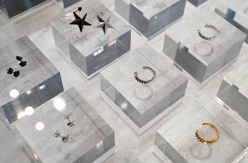 (左)スタービーズスタッドピアス 各¥12,000+tax(中央上)アポストロフピアス ¥28,000+tax