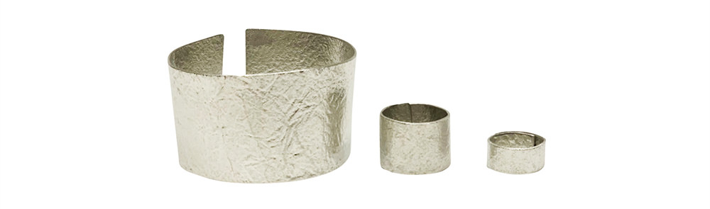 (左から)TIN BREATH 40mm Silver ¥5,000+tax、TIN BREATH Ring 20x80mm Silver ¥5,000+tax、TIN BREATH Ring 10x80mm Silver ¥3,000+tax