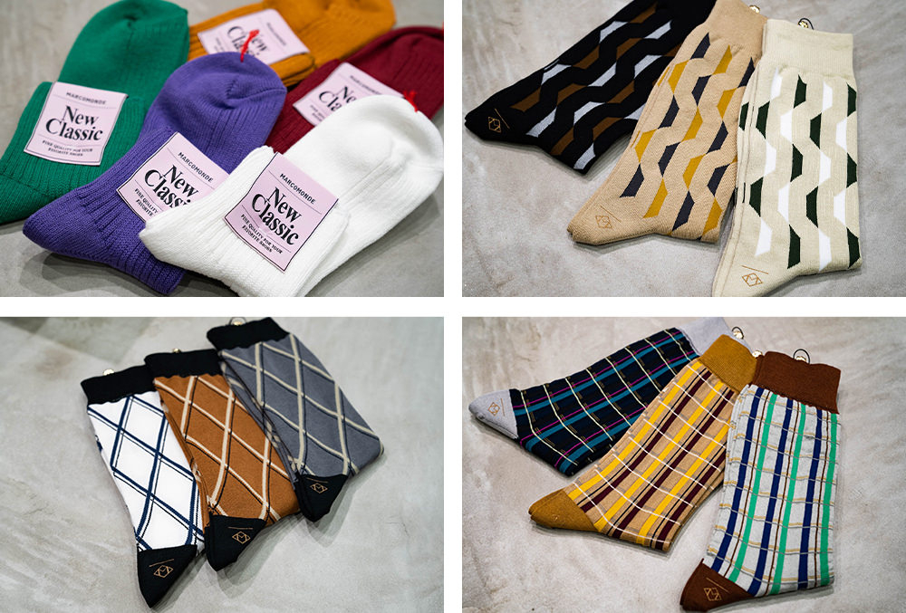 毎シーズン、旅からインスピレーションを受けたデザインをレッグウェアに落とし込む「MARCOMONDE」。“ジャパン”がテーマの今シーズンは、江戸時代の着物の柄に着想を得た幾何学模様のユニセックスなアイテムがそろう。定番ラインの”New Classic”からは、程よい厚みのリブソックスをフィーチャー。コンバースのオールスターとの相性を考えた丈感とカラーバリエーションは、スニーカーラバー必見。自分らしい足もとスタイリングを楽しもう。
