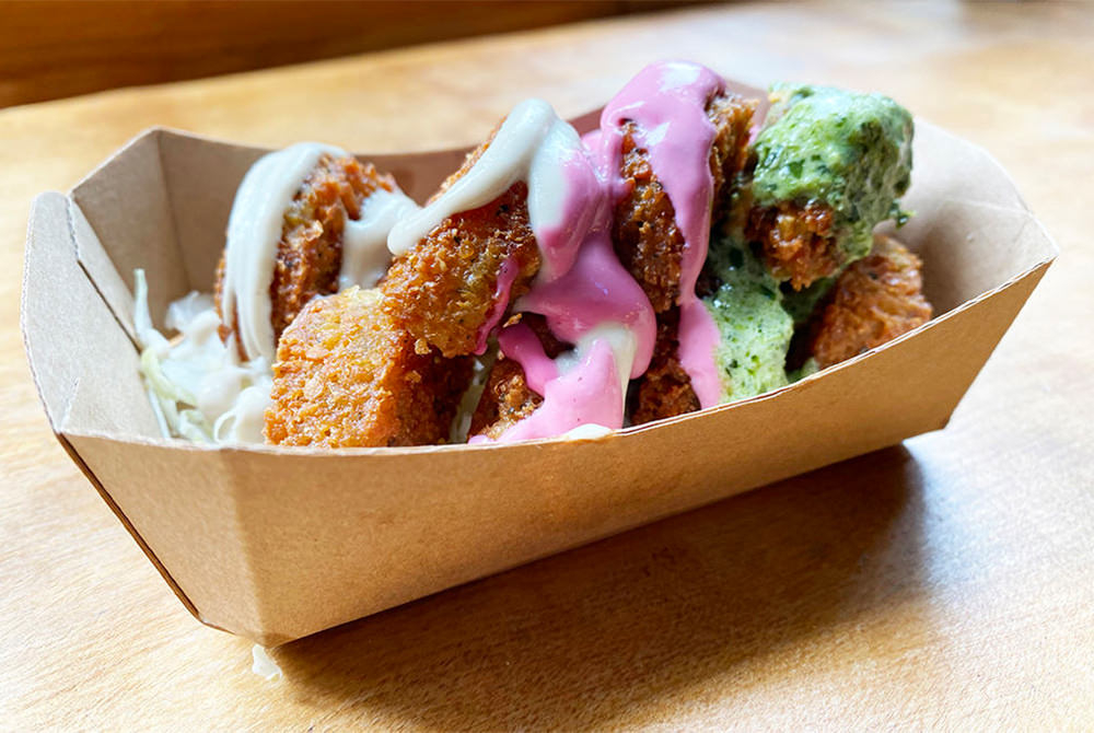 食の多様化だけでなく、サステナビリティの視点からも脚光を浴びているヴィーガンフード。中東料理を扱う「FALAFEL BROTHERS」では、すり潰した豆をコロッケ状にしたファラフェルのスペシャルバージョンが登場。ダイバーシティを意識して、3種類のカラフルなソースをトッピング。ごまペーストを使ったソースで、食べ応え抜群ながらもヘルシーなのが嬉しい。このほか、乳製品やグルテン不使用のギルトフリーなスイーツもおすすめ。
