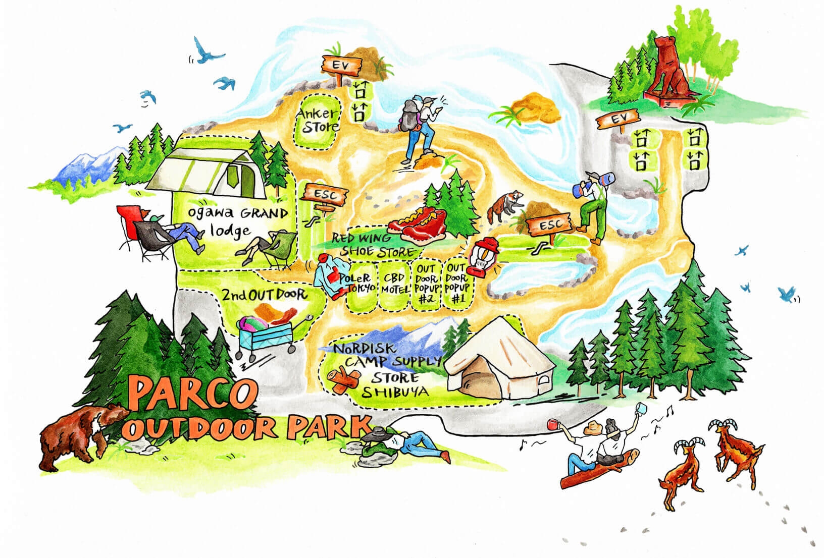 5F「PARCO OUTDOOR PARK」は国内外のユニークなブランド等、スタイリッシュで機能性に長けたアウトドアギアが集まるゾーン。