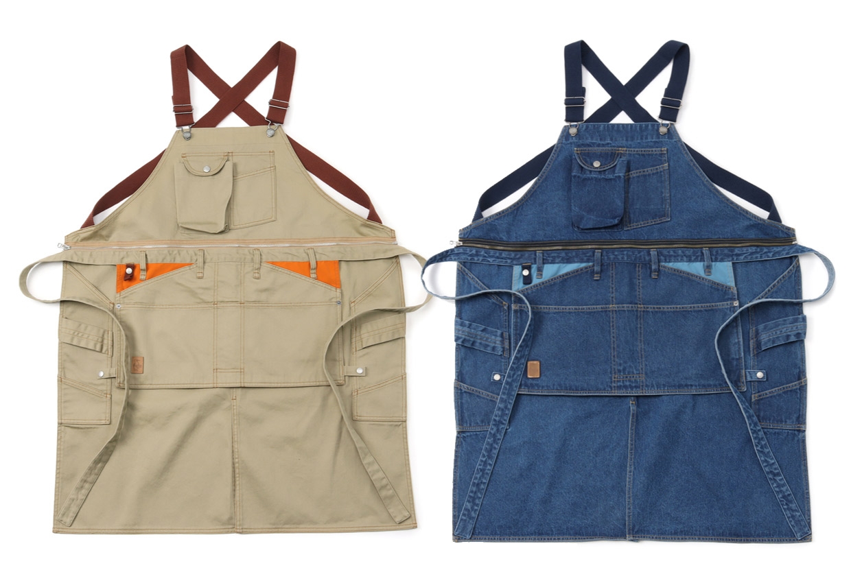 シンプルで、アウトドアだけでなく日常にもなじむデザインのワークエプロンは、ショルダーの長さが調節できユニセックスでの着用も可能。中央のジップで取り外せば、サロンエプロンとしても使用が可能に。3Wayで使用できる優れもの。