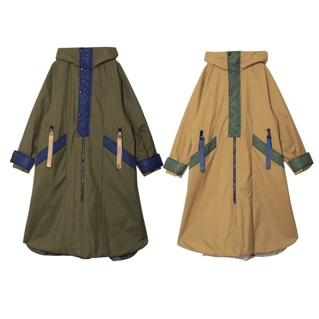 表地に透湿防水素材【BREATHATEC】を使用したオーバーサイズのデザインコート。