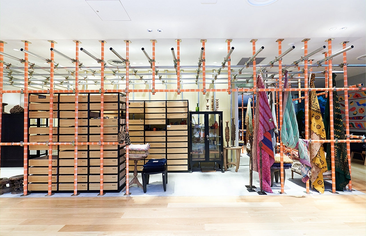 古道具ならではの美しさを見出し、愛情を持って永く大事に使い続けることもサステナブルなライフスタイルのひとつだ。「CIRCUS Inc.」を主宰する鈴木善雄と引田舞による「Archives」では、彼らの審美眼にかなった古道具を中心に取り扱う。膨大なストックや思考回路を垣間見ることができるアーカイブが積み上げられ、博物館のバックヤードをイメージした什器に、木、土、金属、紙、石など、素材別に並ぶ様子は圧巻だ。期間中は、アフリカから古い日本のものまで、世界中のさまざまなカゴが集結。あらゆるシーンで活躍するお気に入りを見つけて。