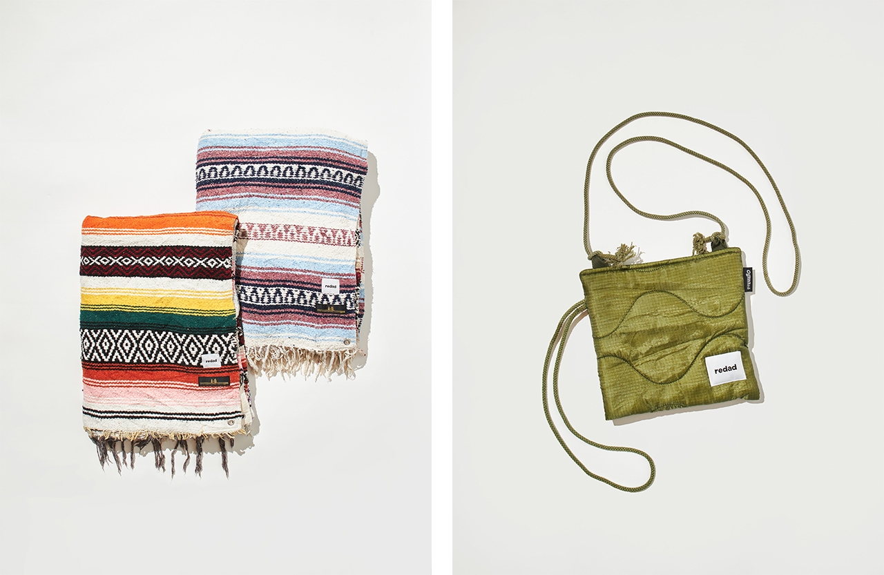 「キャンプをライフスタイルに」をコンセプトに掲げるアウトドアブランド「オガワ グランド ロッジ」は、サステナブルな取り組みにも注力。今春はリメイクブランド「redad」とコラボレーションしたダブルネームのアイテムを展開する。メキシカンラグをパッチワークしてリメイクしたラグは、アウトドアでも使いやすいサイズ感に。ヴィンテージのミリタリーライナー生地をリメイクして再構築したサコッシュは、ひとつずつ表情の異なる一点ものだ。ラグは10点、サコッシュは20点のみの限定販売なので、早めにショップへ足を運びたい。