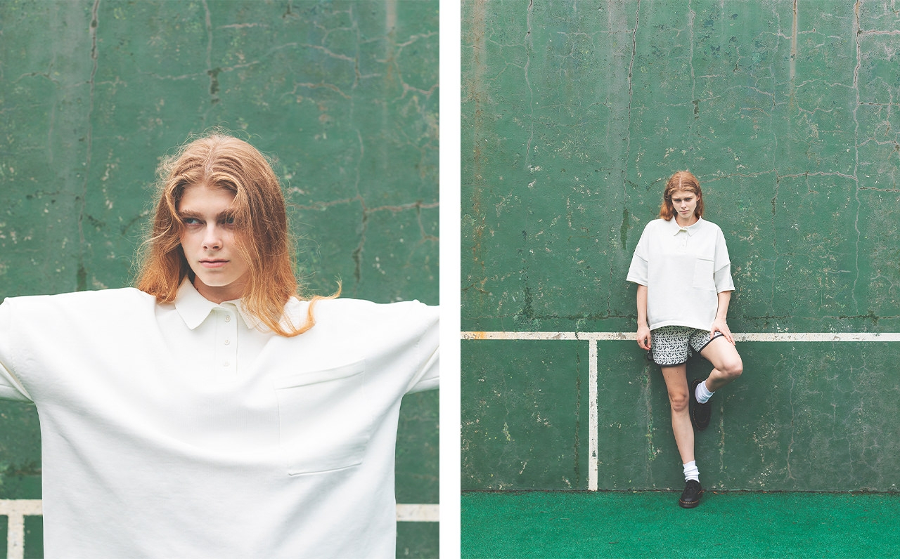 北欧発のアウトドアブランド「NORDISK」のコンセプトストアは、テントやギア、アウトドアで活躍するアパレルまで展開し、地球環境を考慮したサステナブルなアイテムも揃える。中でも今季注目なのは、アパレルブランド「F/CE.」のクルーニットとポロニット。回収されたペットボトルを溶かし、マテリアルリサイクル技術により再生したポリエステル繊維「ECOPET®」※を生地に使用することで、石油を原料とした場合よりもCO2排出量の削減を実現した。オーバーサイズシルエットながら、驚くほど軽量で着心地は抜群。自宅で洗濯可能で速乾性があり、イージーケアが叶うのも嬉しい。