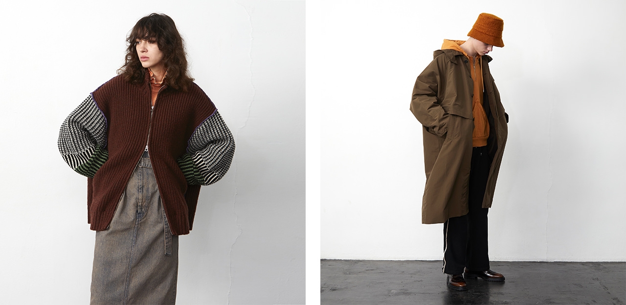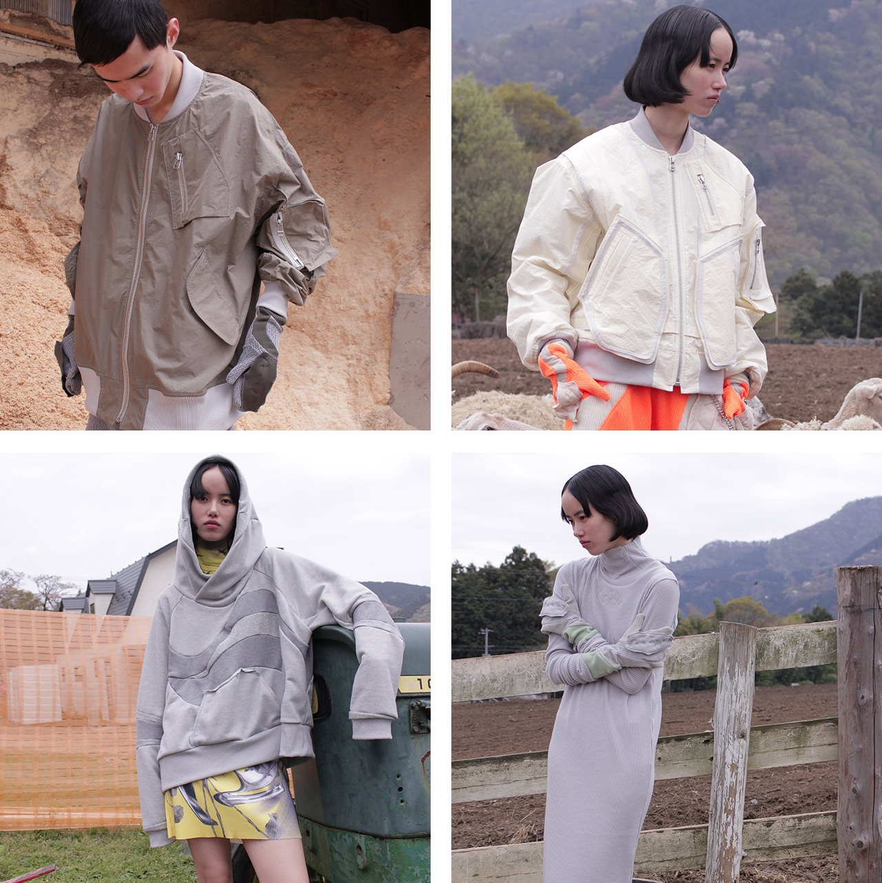 「都市」や「灰色」をキーワードに、”都市空間”としての新しい風景やカルチャーからインスパイアされた独特な世界観を展開するブランド。様々な生地使いとワイドシルエットで立体的に仕立てたハイネックビッグパーカーや、パーツを重ねるように構成したポケットやステッチが特徴的な MA-1 など、構築的なフォルムやディテールに注目。メンズとレディスの性別による違いを感じさせないユニセックスなデザインも魅力だ。POP UP では、新宿ホワイトハウスにてインスタレーションショーを発表した 24 春夏コレクションの受注予約も実施。