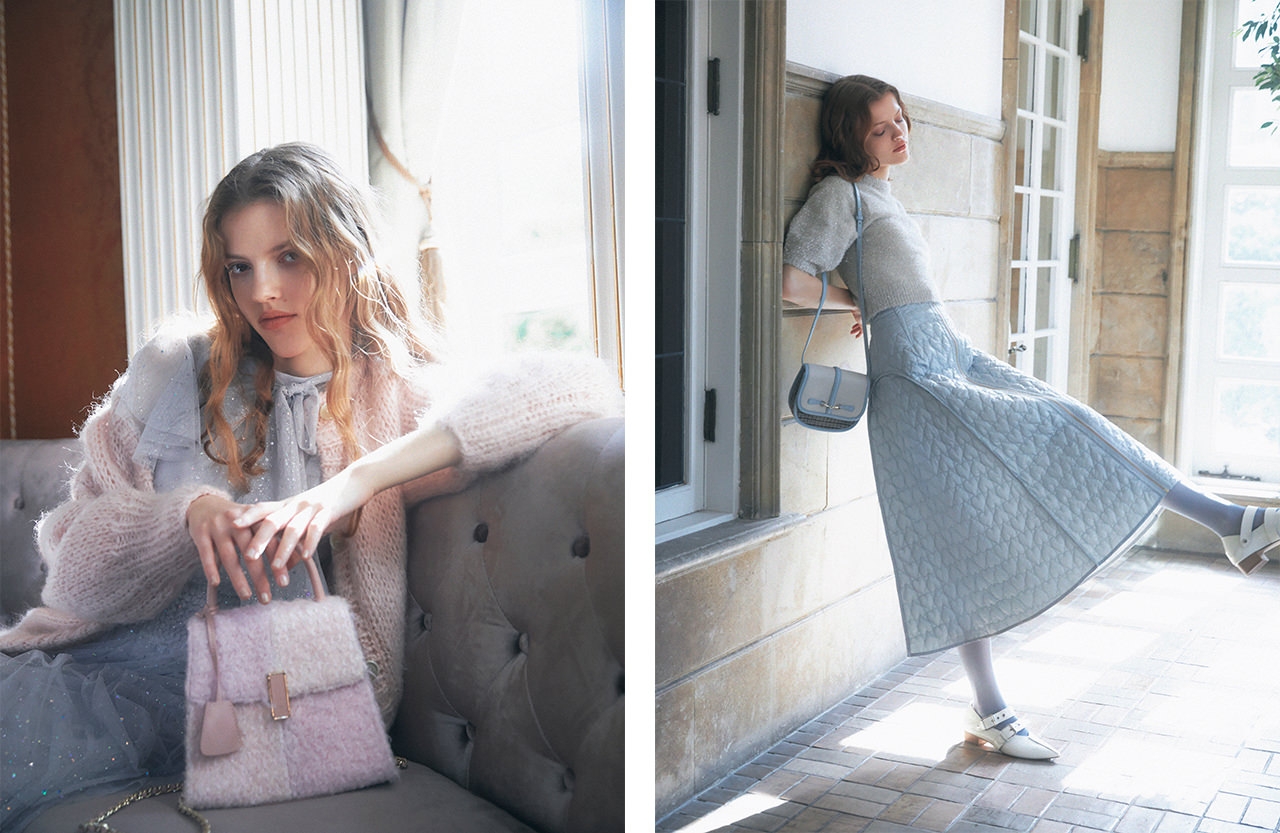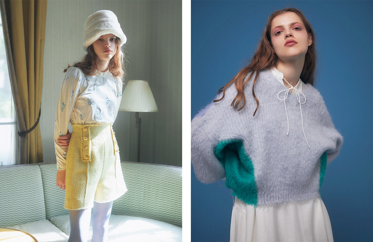 “Advance & Feminine”を掲げる23AWは、好きなものを好きなだけ、素直に自由にファッションを楽しみたい大人のための服を提案。シアーな生地を重ねたレイヤード、大きなリボンやレースの甘いディテール、肌寒い季節に映えるパステルカラーなど、フェミニンなアイテムを多数ラインナップ。ハートが描かれたキルティングスカートやラメ糸を織り込んだニット、光に煌めくチュールドレスで、秋冬の装いにロマンティックな華やぎを添えて。ミリタリーウェアやレオパード柄など、ハードなアイテムにも甘いディテールを加えることで、女性らしいコーディネートが叶う。会期中は一部アイテムを先行販売予定。