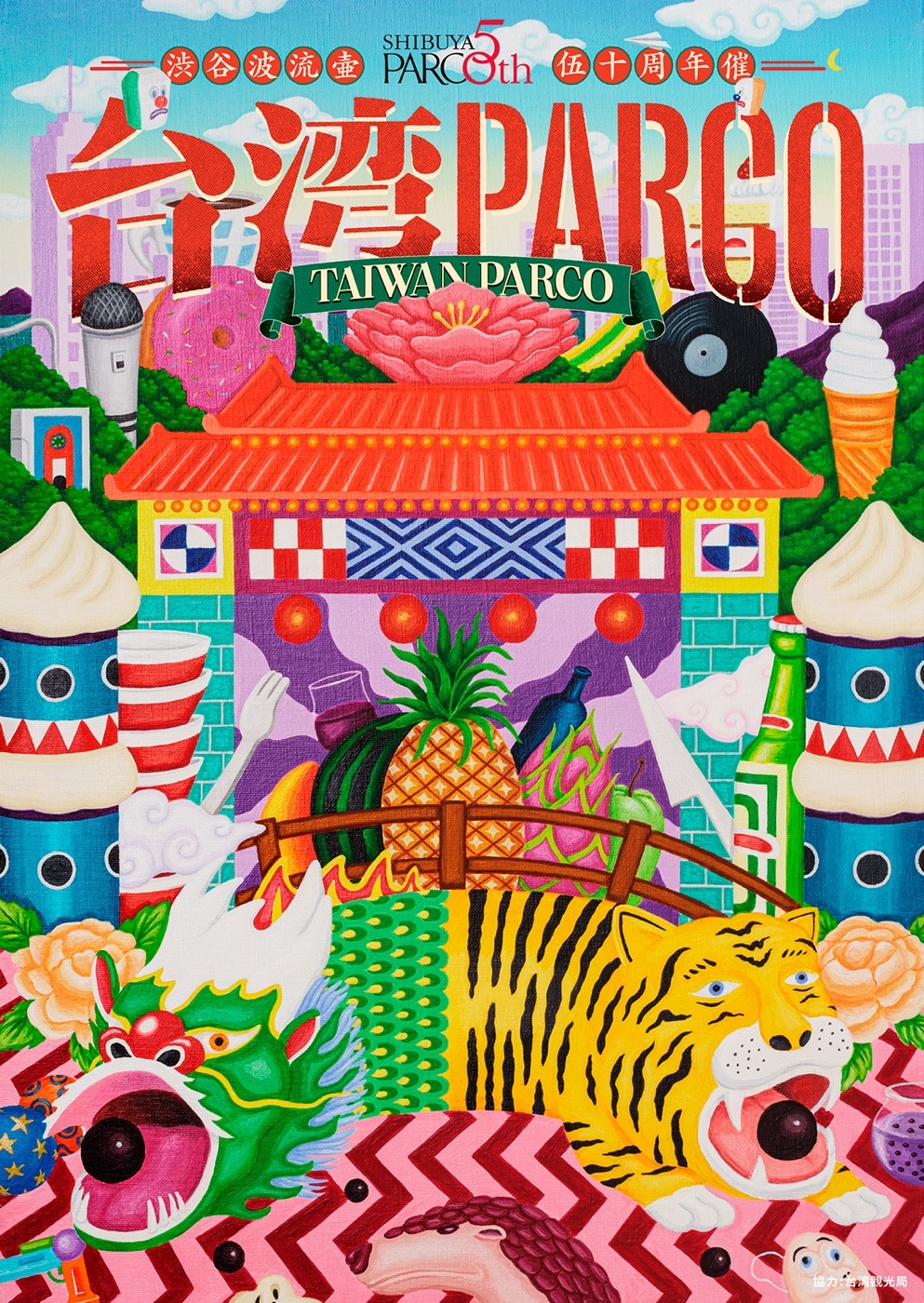 内田修平がイメージした「台湾」を軸とし、もしも台湾にPARCOがあったなら、そんな妄想を膨らませながら生まれた企画の要素から一つの画が完成。上部(「GATE10. PARCO⇄TAIWAN」)、中央(「混沌厨房」)、下部(「空想台湾」)と一枚の画が3要素に分割される。