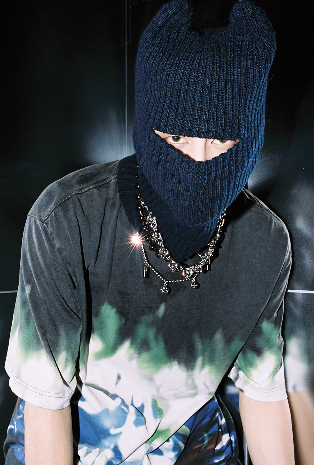 ふわふわな手触りのうさぎの耳や、テディベアのような耳をしたデザインなど、ユニークなバラクラバでトレンドを牽引するAMBUSH®。この日、難易度高めなバラクラバを西さんが人生初挑戦した。「今年の秋冬は謎なオーラを出したいなと思っていたので(笑)、顔までほとんど隠れてしまうバラクラバは挑戦してみたいアイテムでした。レイヴ感があっていいですね!」