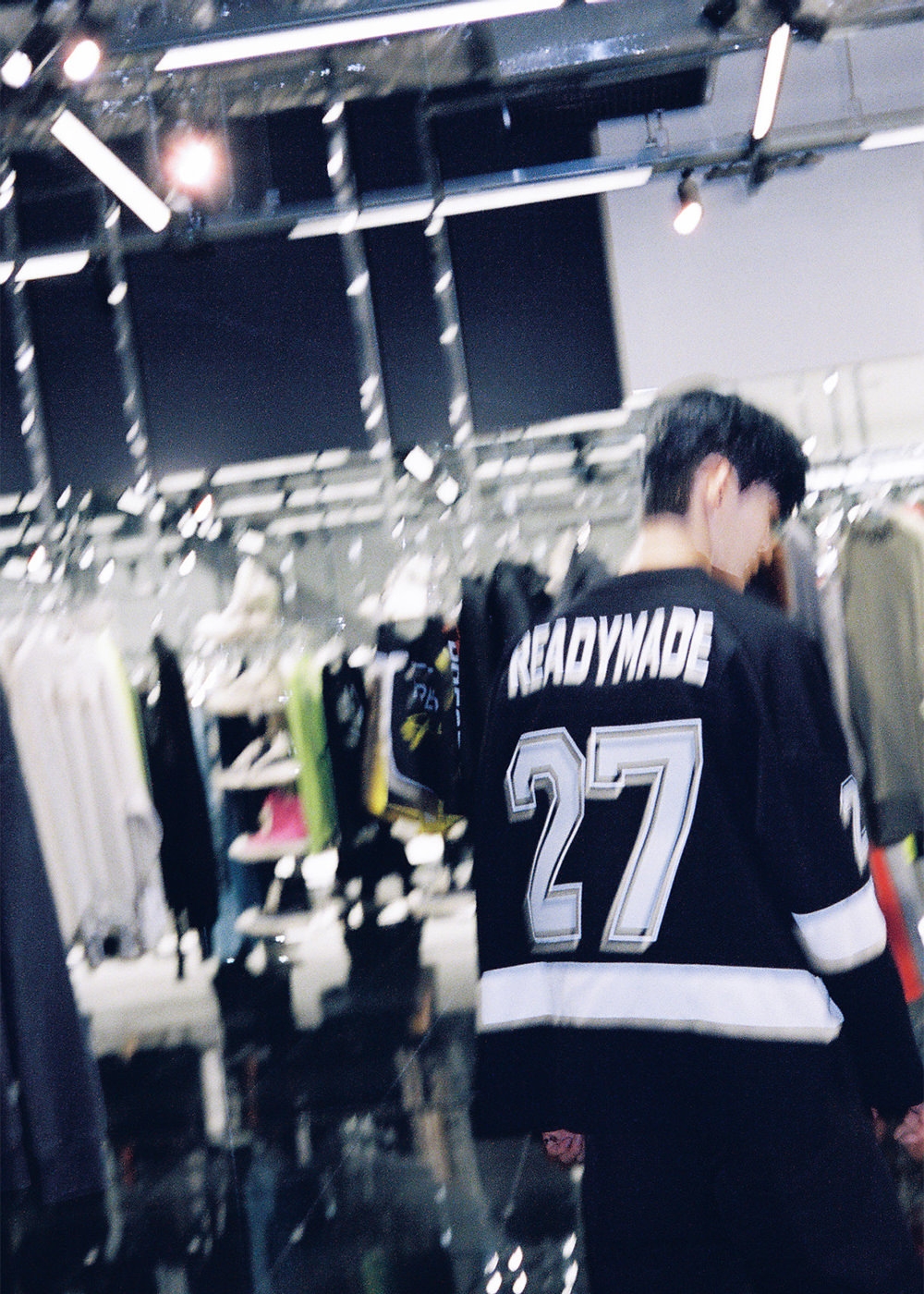 店内をクルーズしていた田島さんが、「Rick Owens」のシンプルな黒いロングスリーブTシャツと「READYMADE」のヴィンテージコットンを使用したダッフルバッグを手に取って吟味する。「ファッションで本当に気分が変わりますよね。自分が好きな服を着ると自然と外に出たくなるし、誰かに会いたくなる。前向きな気持ちになれるからいいですね」と田島さん。