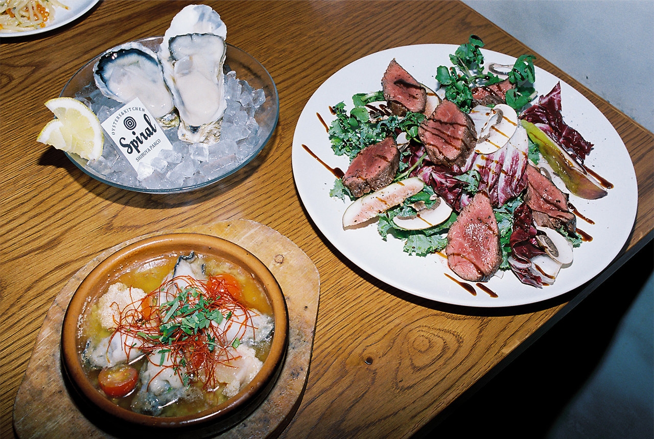 渋谷PARCO 7Fの「Spiral」は、全国の漁場から直送された5〜8種類の新鮮な生牡蠣が食べられるオイスターキッチン。塩味、磯の香り、舌に残るミネラル感、クリーミーなコク、甘み…など様々な味わいの牡蠣をリーズナブルに食べ比べることができる。生牡蠣のほかグリルやフライ、アヒージョ、パスタなど、好みの調理法で味わう牡蠣料理も充実。牡蠣以外にも、新鮮な魚のカルパッチョやサラダ、生パスタ、お肉のグリル、オーダーが入ってから専用マシーンで生搾りする濃厚なモンブランまで…シェフが腕を振るう欧風料理を存分に堪能できる。