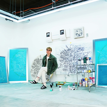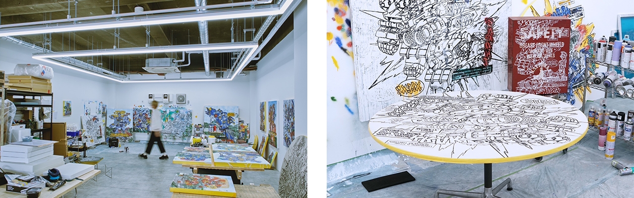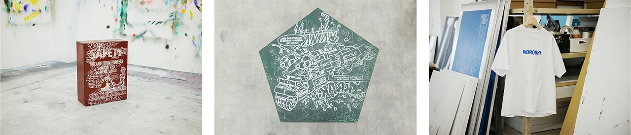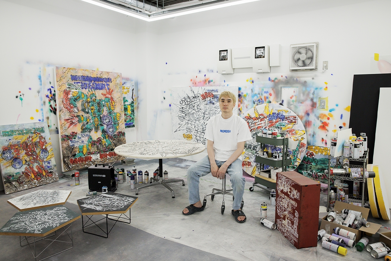 広告や音楽、ファッションなどのアートディレクションを経験後、作家活動を開始。「社会に消費されずに残る作品をつくっていく」という信念のもと、現代の大量消費社会において、クリエイティブが消費されることをテーマにした平面作品を制作している。