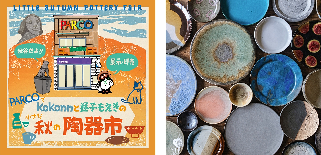 東京谷中のうつわ店「kokonn」と益子の陶磁器ギャラリー「益子もえぎ」共催による大人気イベントを秋の始まりに渋谷PARCO屋上にて開催。 益子焼を中心に全国30以上の人気作家・窯元が一堂に会し、東京の真ん中で陶器市気分が味わえる楽しいイベント。ART WEEKに合わせ、「kokonn」セレクトのアートな器を集めた「ART OR UTSUWA?」コーナーや、ステンドグラスの花とガラスの花器を組み合わせた「ガラスのお花屋さん」など特別企画も予定。