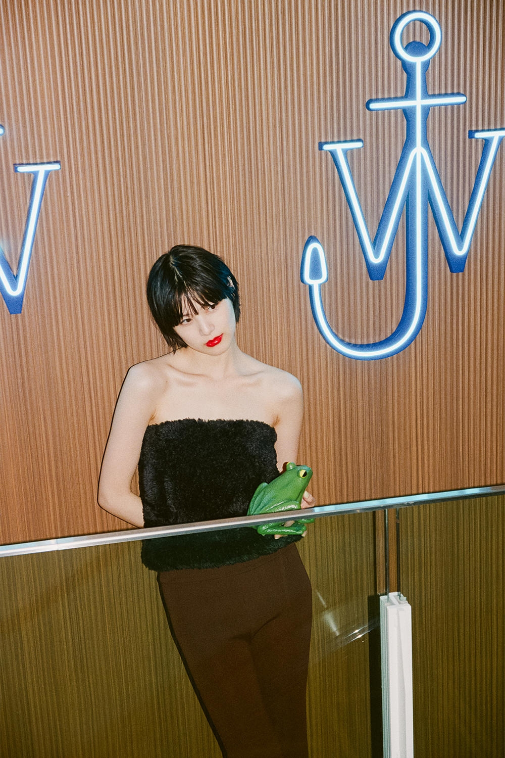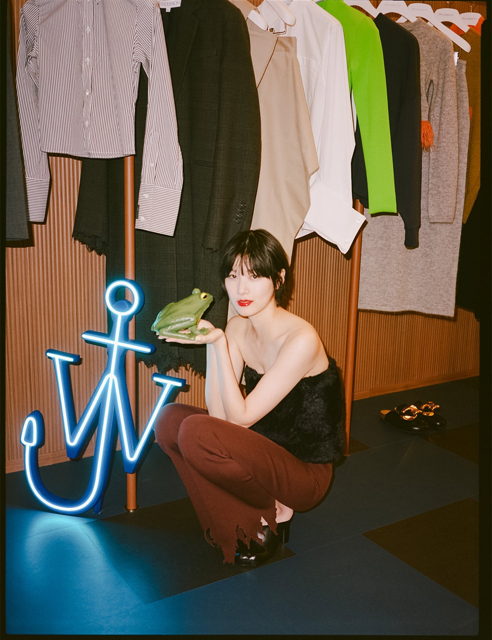 「動物のモチーフなど、コレクションでは斬新なピースを見せてくれるので、JW ANDERSONはいい意味で“普通ではない”と感じていました。今日、着させていただいたお洋服も、見た目のイメージはちょっとワイルドなのですが、実際に纏ってみると、体のラインがとてもキレイに見えて、女性らしくエレガントだったり。着ていてすごくワクワクするような、JW ANDERSONというブランドの一部になったような感覚で楽しませていただきました」。