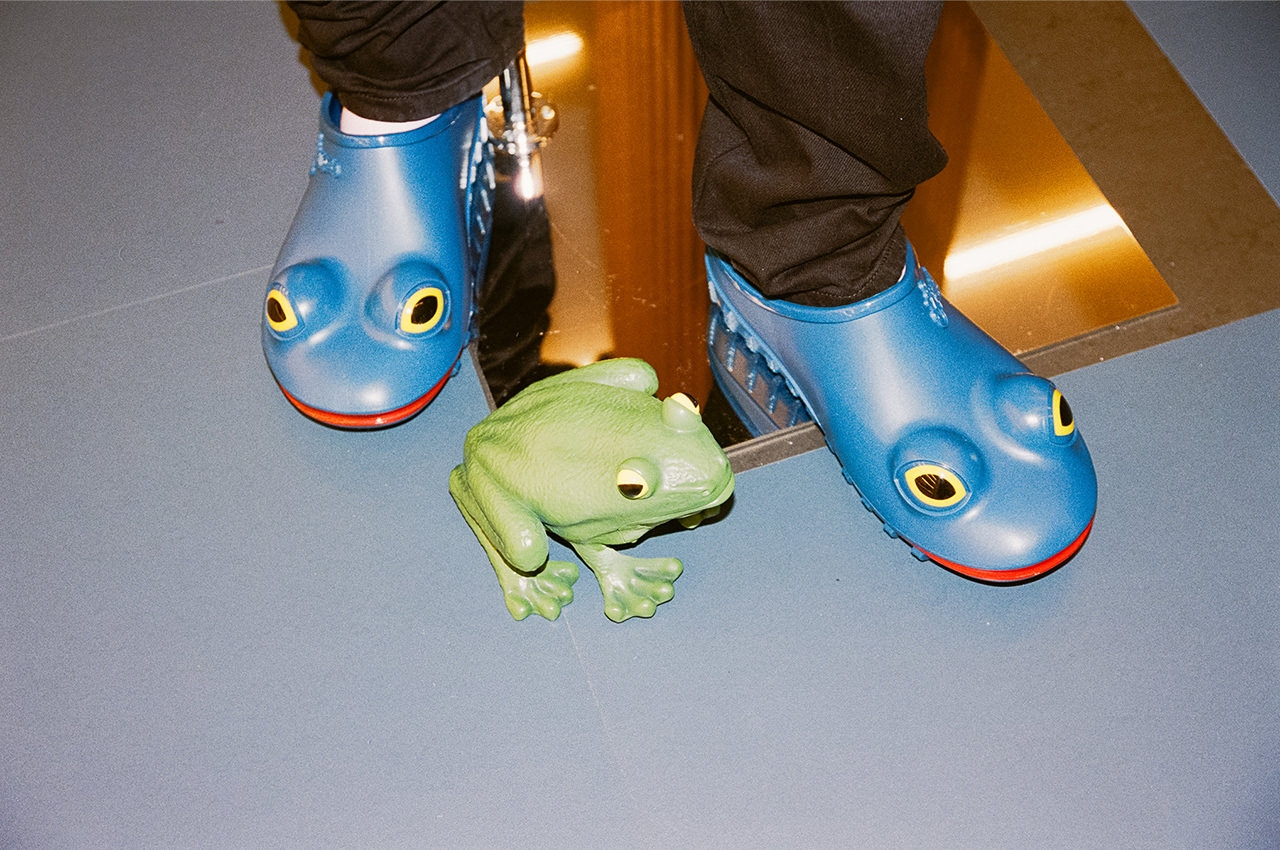 FROG CLUTCH BAG ¥140,800、JW ANDERSON X WELLIPETS FROG LOAFERS ¥71,500