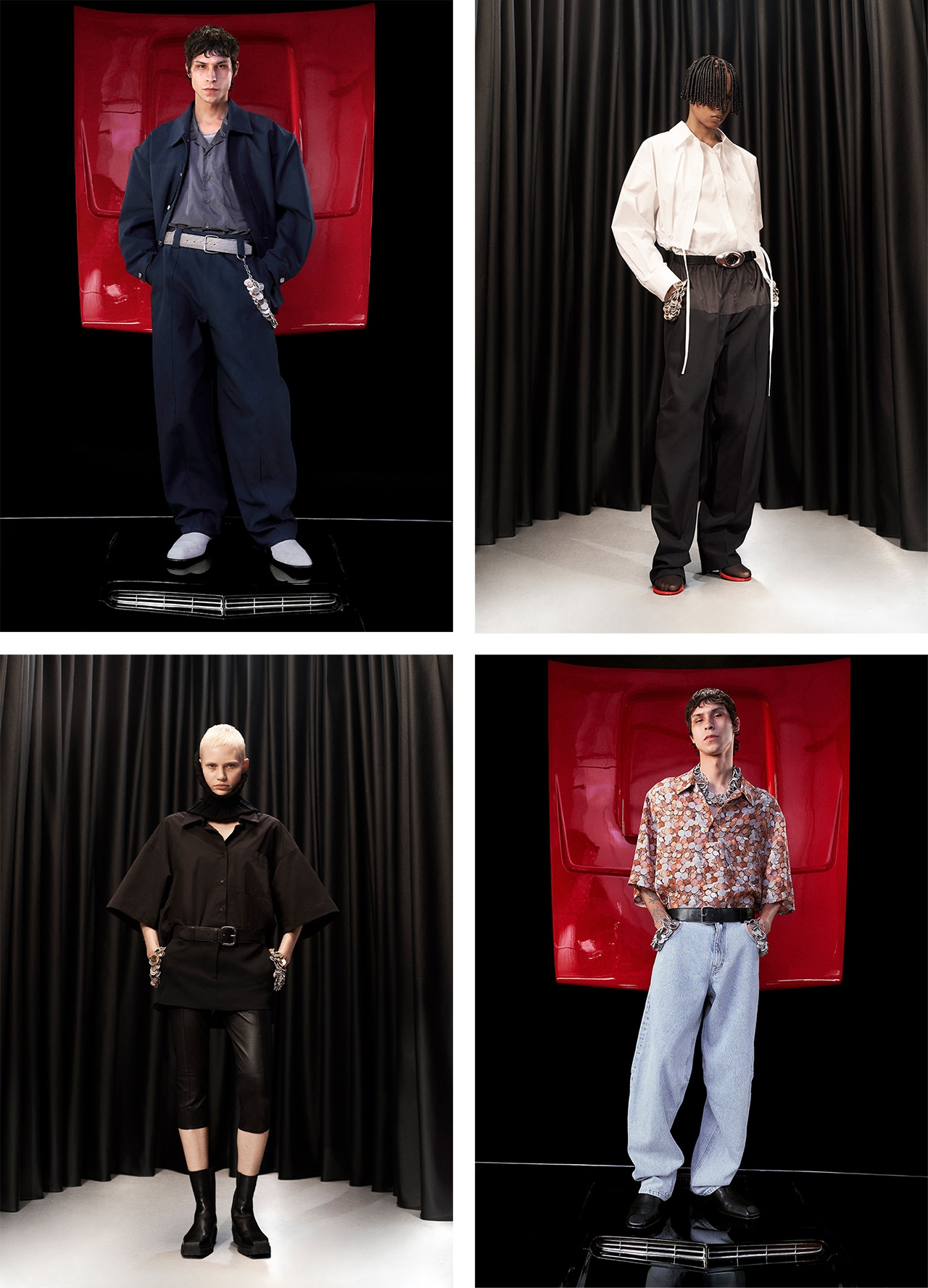 ブランドのDNAを見つめ直し、現代のライフスタイルや価値観に置き換えて再構築した24S/Sコレクション。ナイロンにプリントされたデニムシャツやハイウエストまたはローウエストとして履くことができるウエストバンドを備えたパンツなど、皮肉も感じられるようなイノベーティブなアイデアに溢れている。また、肌を露出しながら温かさをキープできるレイヤードスタイルも提案。クロップド丈のパファージャケットやドレスアップもカジュアルにも着回せるトラックパンツなど、昼から夜まで多様なシーンで楽しめる変幻自在なデザインが揃う。