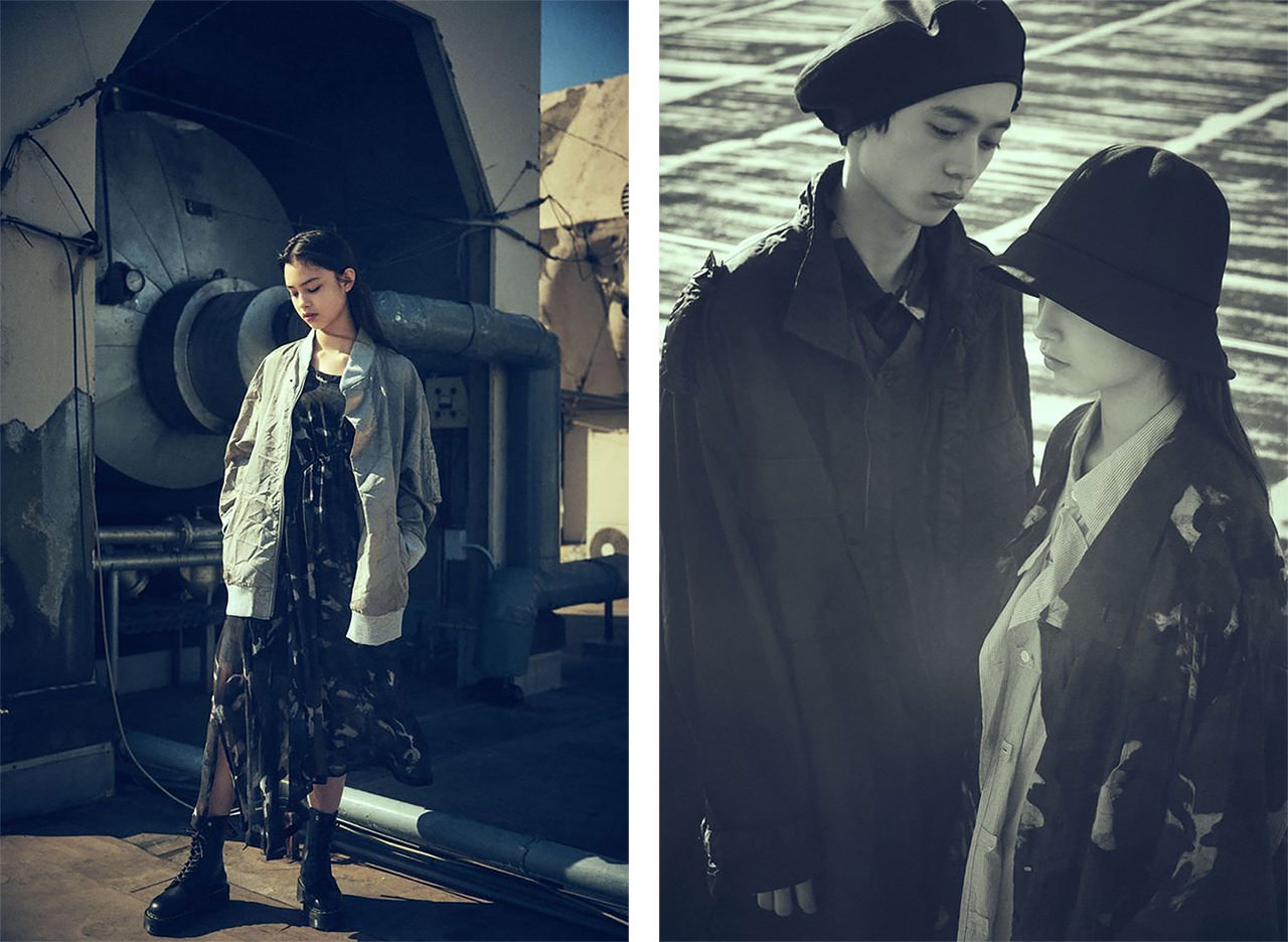 今季は、ワークウェアやミリタリーのディテール要素を取り入れたブロダクトを展開。春夏らしい透け感のあるカモフラージュ柄ドレスや、独特のムラ染めでこなれた味わいを醸し出すコートやパンツなど、生地にこだわったシリーズに注目だ。モッズコートやMA-1は、ゆったりとしたボリュームのあるデザインにアレンジ。ショルダーラインのスリットからインナーが覗くショートジャケット、斜めに配したポケットから長めの紐をたらしたパラシュートパンツなど、リラクシングな空気を纏った服が多彩な表情を生み出す。