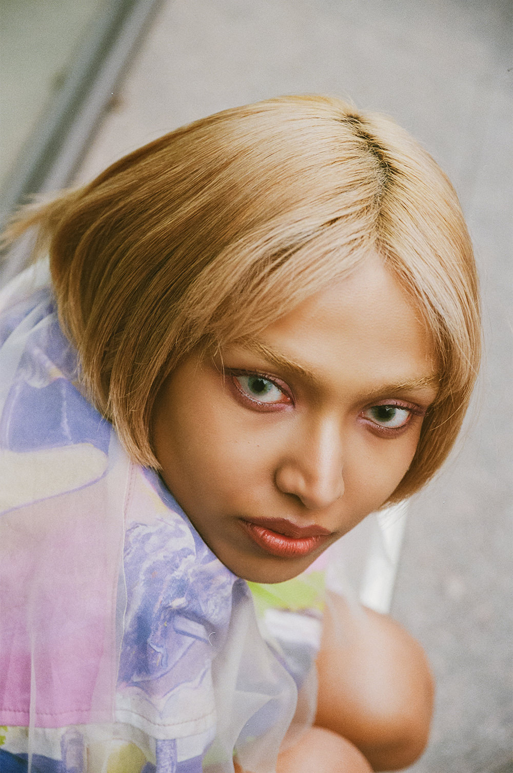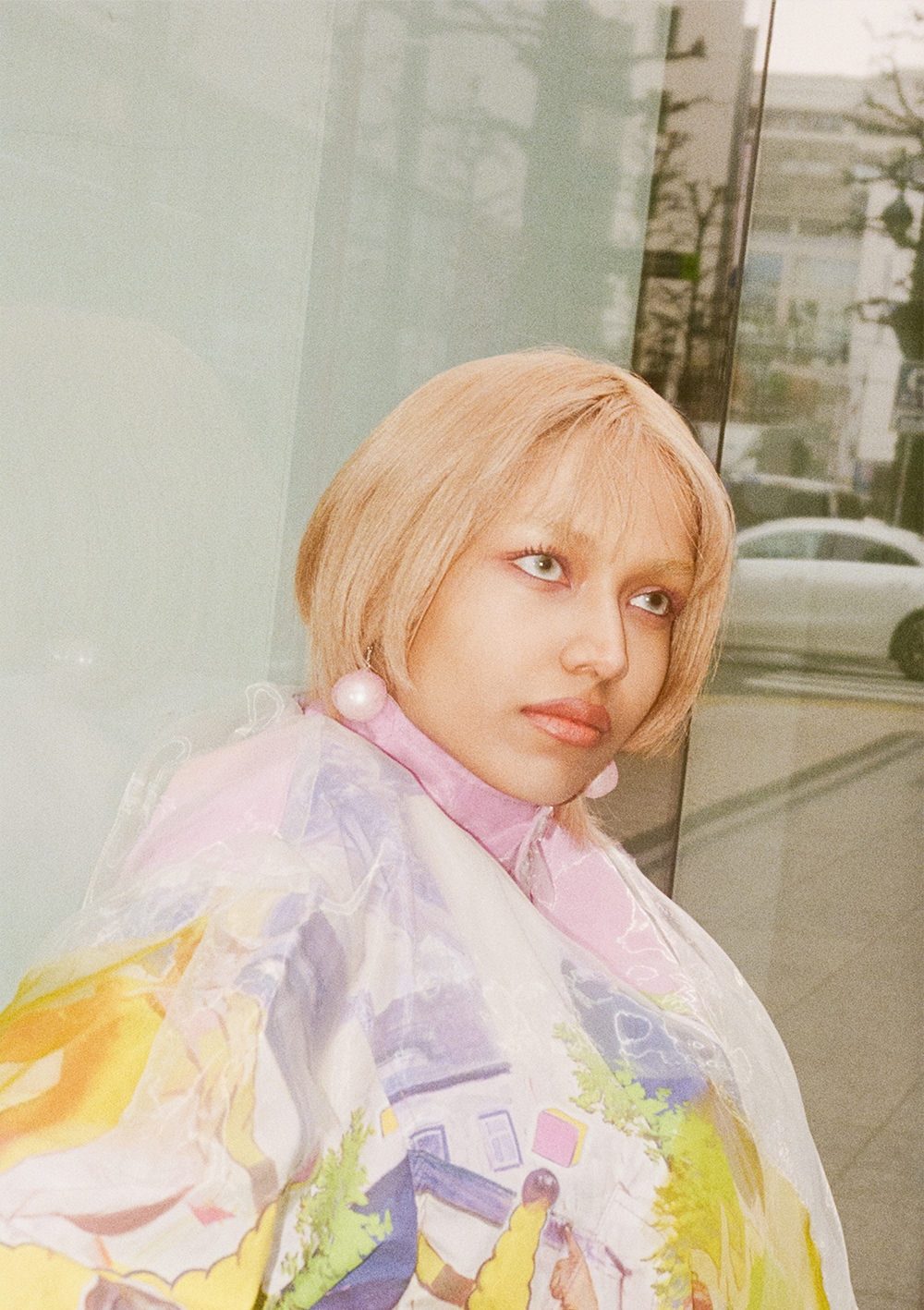 「私は、ルーツである国と日本の両方をベースにしてきたのですが、自分が暮らしてきた環境のなかで、言葉が通じないことを今まで経験したことがなかった。でも、母国語が通じない海外のコレクションへ行くようになって、自分自身が『外国人になった』という面白さを初めて経験しました。『どこから来たの?』と聞かれて『from Tokyo』と答えると、『えっ? フロム東京?』みたいな(笑)。どちらかと言うと、ヨーロッパ側にいる若者として溶け込んでしまっているように見える私が、『東京から来たんだよ。ネイティブは日本語だよ』と言うと、『どういうこと!?』とみんなが驚いて、何度説明しても理解してもらえない(笑)。みんなに驚かれることに、逆に私が驚いて……。海外の人には、今、東京という街が多様性にあふれている事実をまだ知られていなくて。実は私のように南アジアや日本以外の外国をルーツに持っている人も東京にはたくさんいることを、ヨーロッパに住む人は知らないんだと実感しました。それは、とっても新しい経験でした」