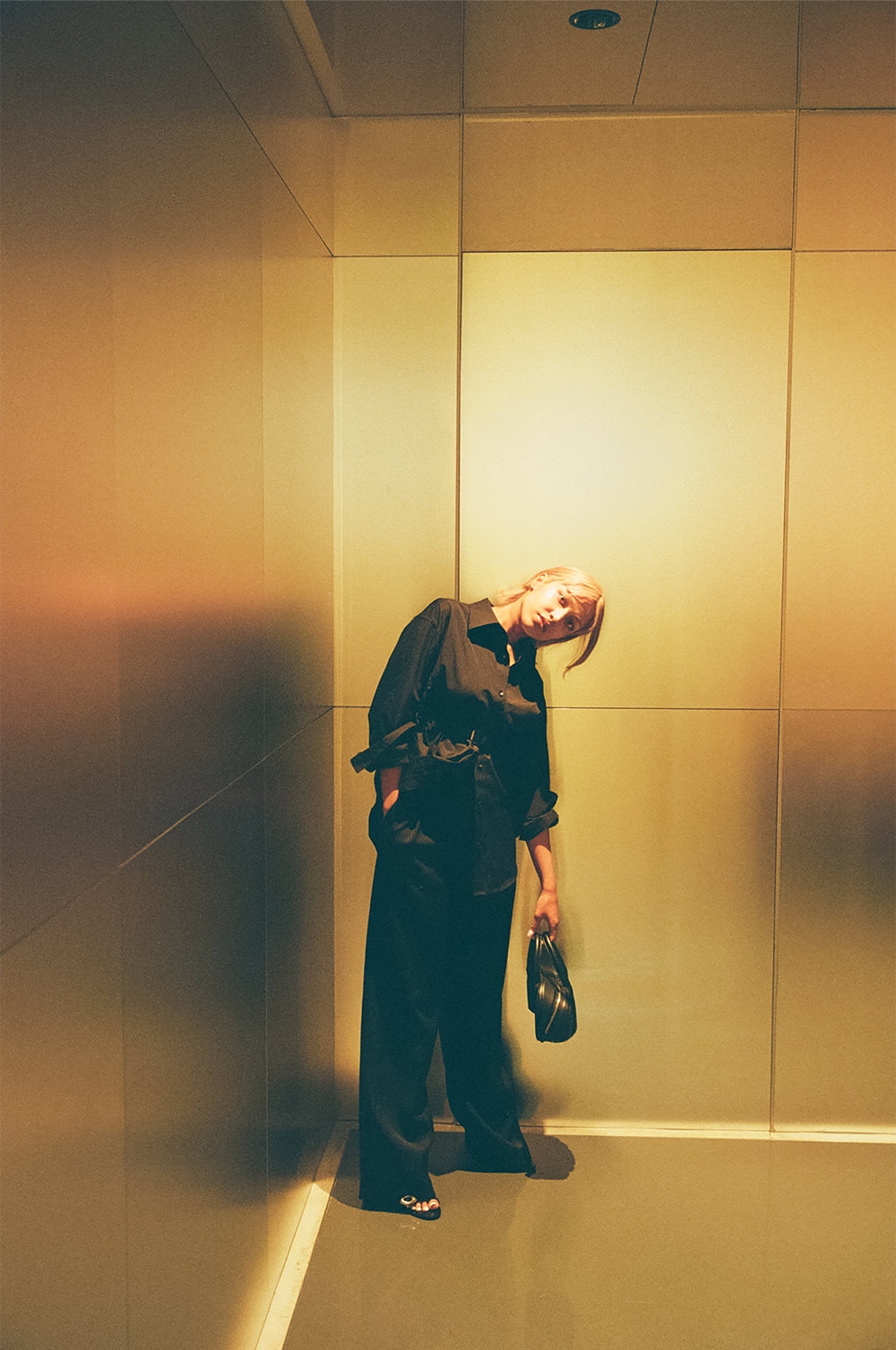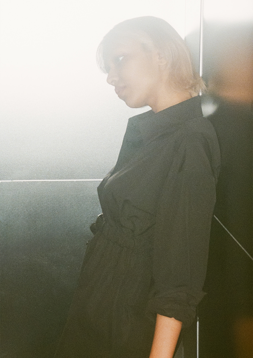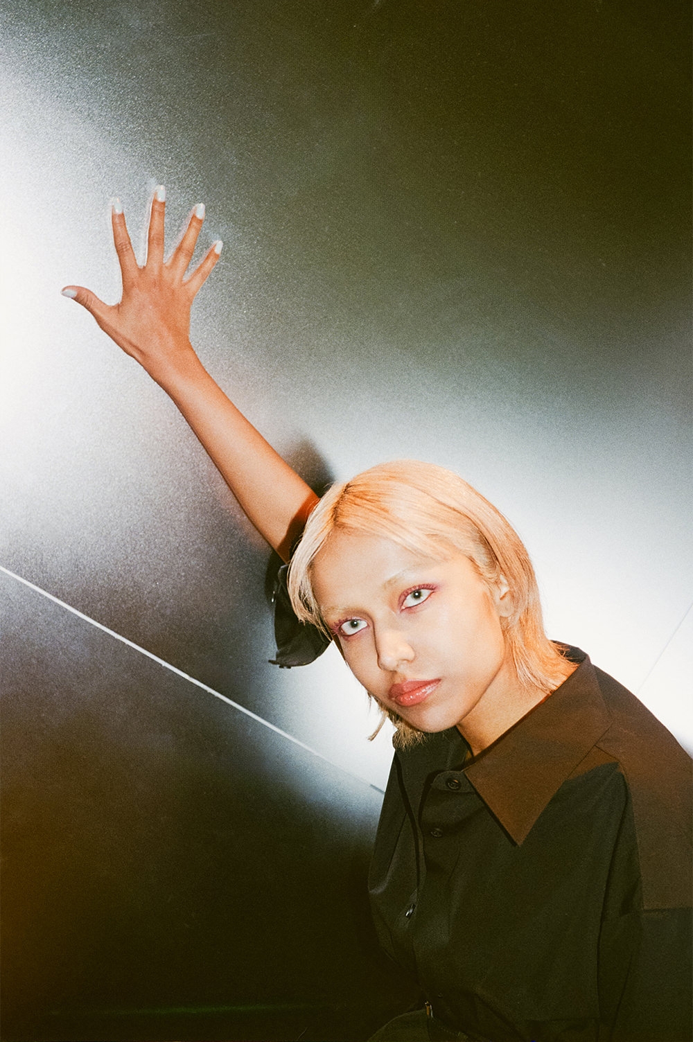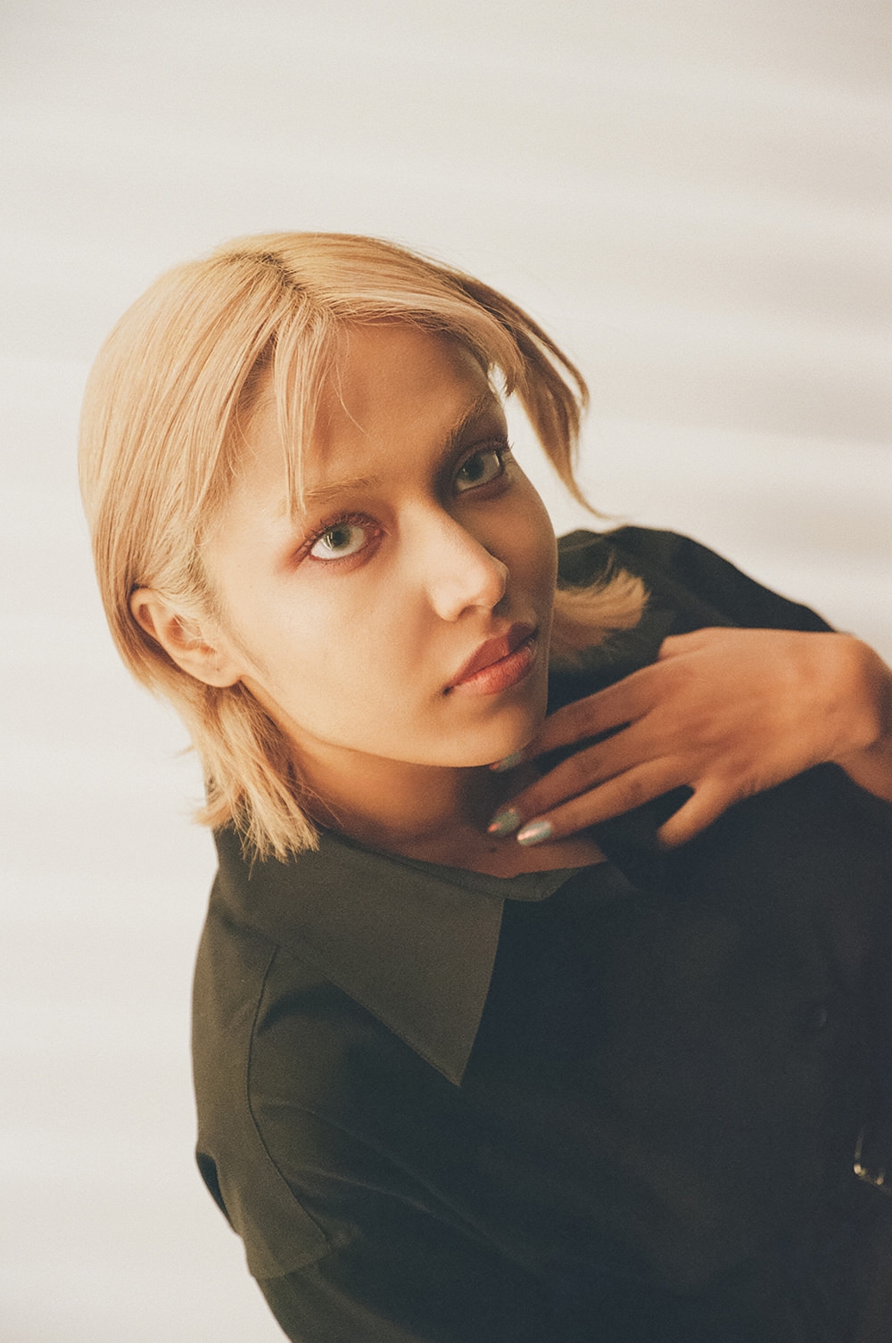 金髪に染めたヘア、カラーコンタクトをした青い目が印象的なシャラ ラジマさん。容姿からは自身の人種が判断できないようにすることで、「私は何人でもない」というコンセプトのもと、人種のボーダーレスを表現している。時代とともに変化する価値観を見事に表現者として体現する彼女は、まさに今を生きる“アルファウーマン”。シャラさんと一緒に、「alexanderwang」が理想とする現代のアルファウーマンに似合う、最旬のエッセンスを探しにショップクルーズ。
