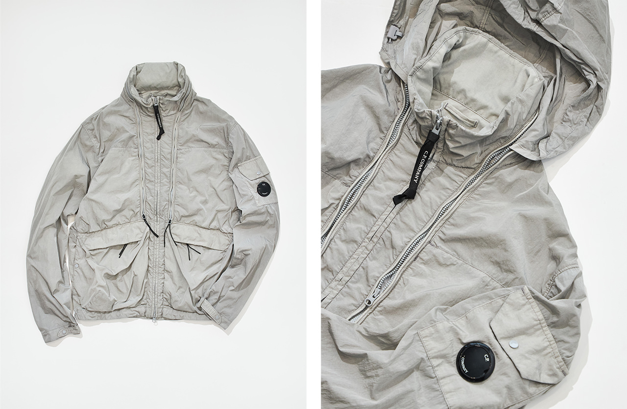 ミリタリーウェアの機能美にフォーカスし、そのディテールを再構築したデザイン性の高い服を展開する「C.P. Company」がPOP UPを開催中。今シーズンは、パーカーやベストに変化するユーティリティージャケット、フードが収納可能なショート丈ジャケットなど、サステナビリティと機能性を併せ持つファブリック“CHROME-R”を使ったアイテムに注目。マルチフィラメントのリサイクルナイロン糸で織り上げたオリジナル生地で、優れた防水・防風性能を備えている。またブランドを象徴する独自のガーメントダイにより鮮明で深みのある色合いが現代的なムードを醸し出す。