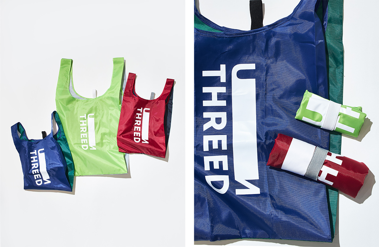 UN3D.|バイカラーデザインのエコバッグをモードなファッションに合わせて
