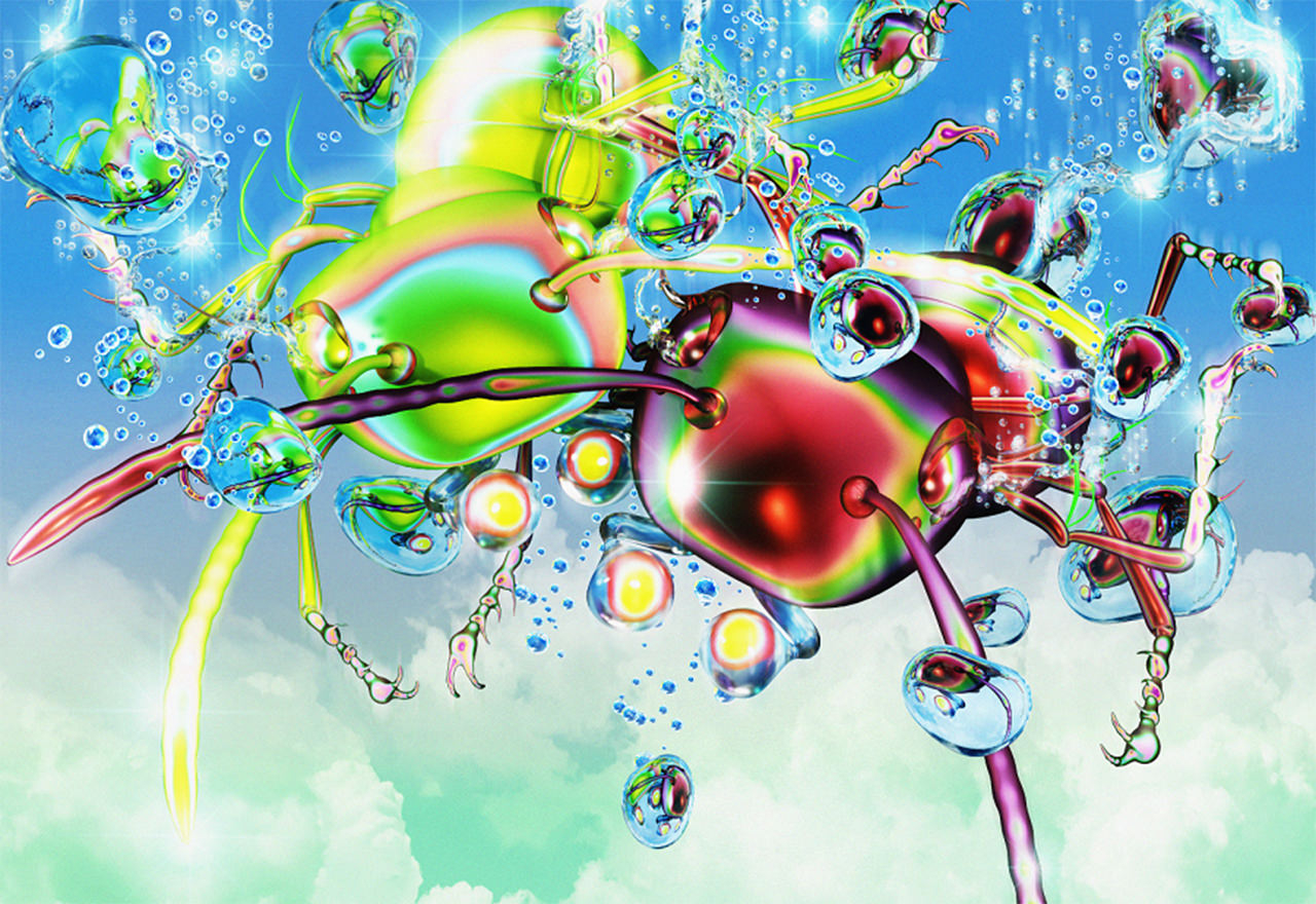 また来場者は会場でおにぎりを握ることができ、女王蟻にお供えをすると悪態をつく音声を奏でることができる。村田氏の作品は2020年の実験的作品から倫理的視点へと移行され、本作では蟻という人間のメタファーを用いて、風刺的に人間活動の豊かさを探究。「Rice doesn’t work」や「Why does the world love tears?」(ともに木版UVプリント)などの作品が並ぶ。