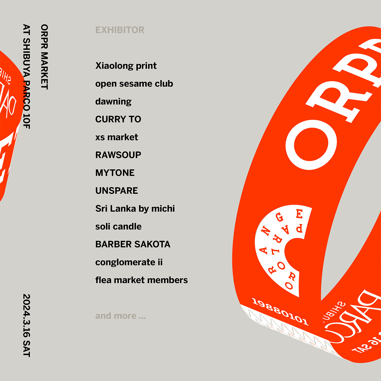 ORANGE PARLORが送る1日限りのマーケットイベント「ORPR MARKET」。オレンジパーラーにゆかりのある10を超えるブランドやショップのアーカイブアイテム、デザイナー・オーナーの私物が一同に集まるマーケットイベントだ。当日は購入したアイテムにその場でシルクスクリーンプリントも可能。自分だけのオリジナルアイテムをつくる体験ができる。