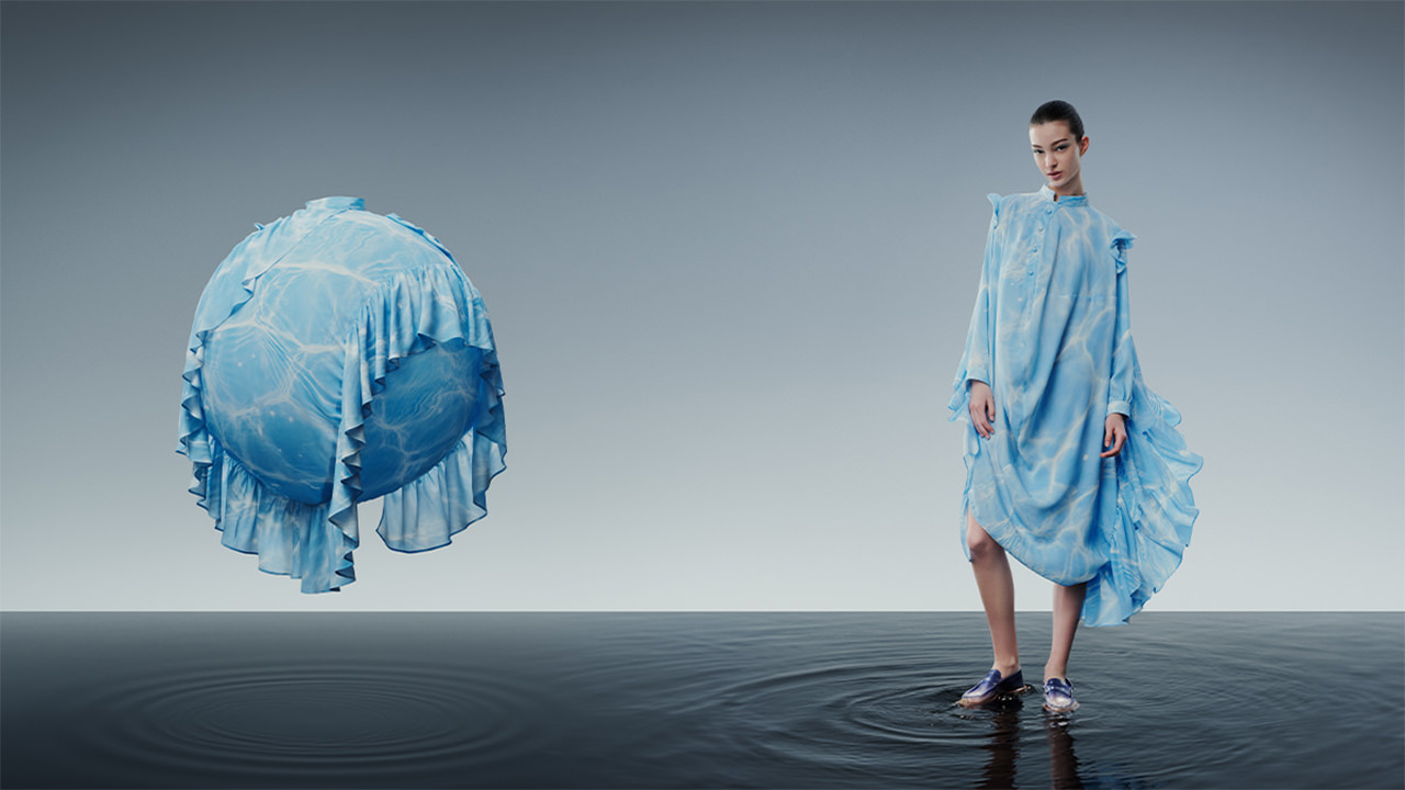 「TRUE BLUE TEXTILE」プロジェクトは、“水をまもるために、まとう”をコンセプトに、ファッションを身に着けることで繊維・アパレル業界における社会課題を知り、考えるきっかけを促す取り組み。プロジェクトの趣旨に賛同した、森永邦彦氏が手掛ける「ANREALAGE(アンリアレイジ)」やバンタンデザイン研究所の現役学生デザイナーによって制作された衣装が展示される。