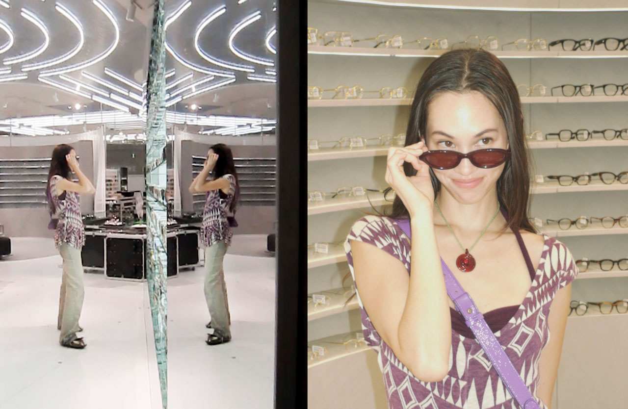 「なかなかフィット感がしっくりくるサングラスが見つけられなくて、いつも決まったものを着用していました。ずっと欲しいなと思っていた、レンズの幅が狭いキャット系の形のものがあって、しかもその日の服の色合いにマッチしていて、これだ!と思い選びました。これからの季節に大活躍してくれそうです。」- 水原希子