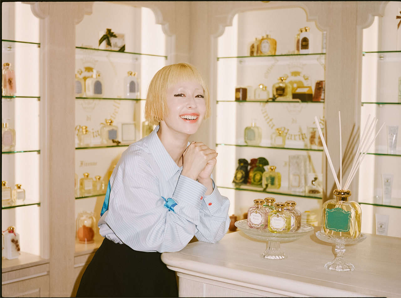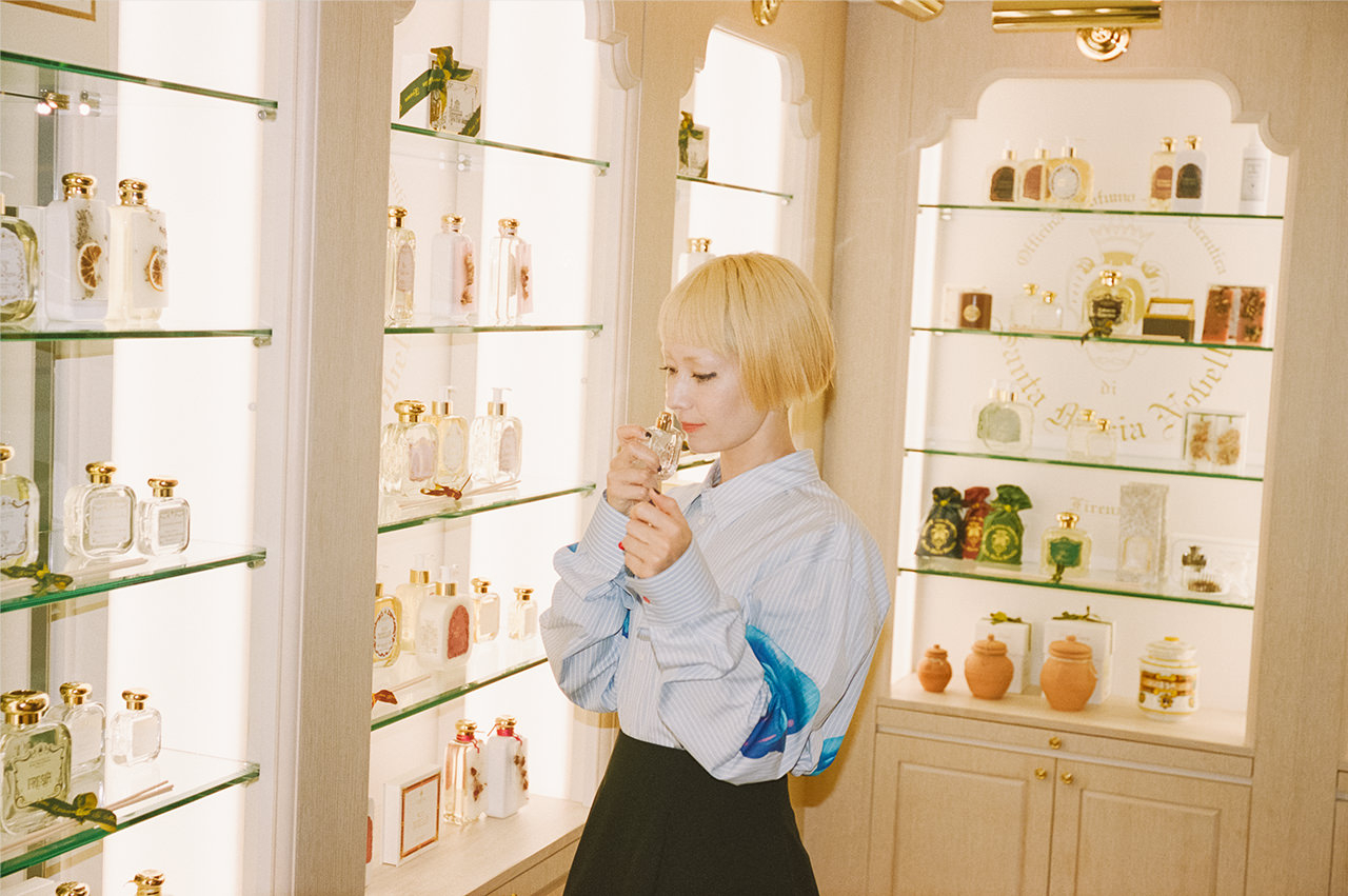 日常的に家族みんなで香りを楽しんでいる木村カエラさん。彼女が「Santa Maria Novella」に出会ったのは、デビュー間もない19歳の頃だそう。そこから20年間ずっと、カエラさんにとっての香りのシグネチャーはローザ・ガーデニア。懐かしいデビュー当時の思い出を胸に、渋谷PARCOの「Santa Maria Novella」をショップクルーズ。